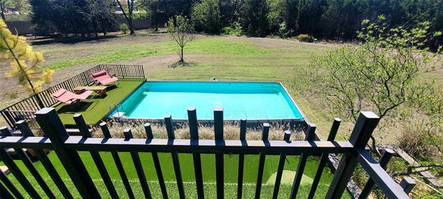 Furnished home situated on three scenic acres just minutes from Lake Lavon. The main level offers an open-concept layout where the living room, dining area, and kitchen flow seamlessly together. Concrete floors and oversized overhead doors blur the line between indoor and outdoor living, creating an ideal space for effortless entertaining. Also on the first floor is a full bathroom with direct access to the pool area, a stackable washer and dryer, and a mudroom with built-in cabinetry and ample storage. The second level features two spacious primary suites, each with its own ensuite bath. A game room with video games and a third-level loft provide additional flexible living and recreation space. Outdoor amenities are designed for fun and relaxation, including an above-ground pool, firepit area, frisbee golf, putting green, basketball hoop, and a large covered patio perfect for gatherings.