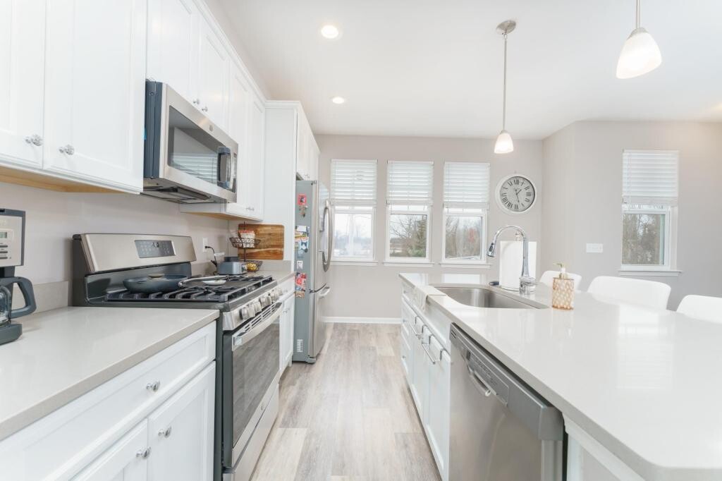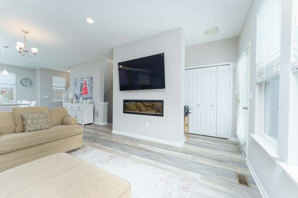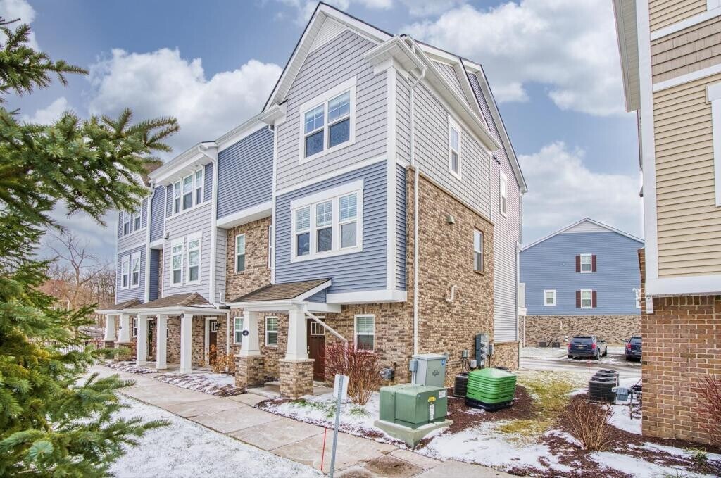 Experience the Best of Brighton Living! This beautifully designed 1,592 sq ft end-unit condo offers 2 bedrooms and 2.5 baths in an amazing location just three blocks from downtown Brighton, where shopping, dining, and entertainment are right at your fingertips. The spacious open-concept main level features a bright living area and kitchen with center-island offering additional seating, quartz countertops, subway tile backsplash, stainless steel appliances, luxury flooring, and a convenient half bath. Three side windows fill the living room with abundant natural light, while a stunning 50" linear electric fireplace adds warmth and style. Enjoy outdoor living from both the welcoming front porch and a private balcony overlooking a peaceful pond with beautiful views. Upstairs, you\'ll find two generously sized bedrooms, each with its own private full bath featuring ceramic tile floors and tub/shower surrounds, along with easy-access, bedroom-level laundry for everyday convenience. With an attached garage, guest parking, all appliances included, and maintenance-free living, this is the perfect spot for professionals, couples, or small families who want style, convenience, and downtown energy without the upkeep.