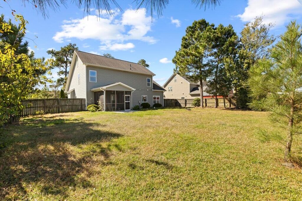 $500 OFF 1st Month's Rent! This stunning 3 story home located in the charming city of Holly Ridge in between Jacksonville and Wilmington make it a convenient location for all. This 3 bedroom home includes 2 additional bonus rooms and 2.5 bathrooms. This home boasts an open concept layout with high ceilings, creating a spacious and inviting atmosphere. The eat-in kitchen features an island, perfect for casual dining while the spacious living area offers a gas logged fireplace for the upcoming cool nights. The master bedroom is conveniently located on the main level and includes a large walk in closet and private ensuite. The spacious ensuite features his/her sinks a walk-in shower and for added relaxation, a large soaking tub. The home also offers a separate laundry room with a washer/dryer (as is). The property includes a spacious fenced yard, a two-car garage, and an additional parking pad, providing ample space for vehicles. Enjoy the outdoors from the comfort of your screened-in porch or take a short trip to the nearby beach. This Holly Ridge gem is waiting for you to make it your own. 2 Pets allowed with owner approval, $150 non-refundable pet fee per pet, no bully breeds.