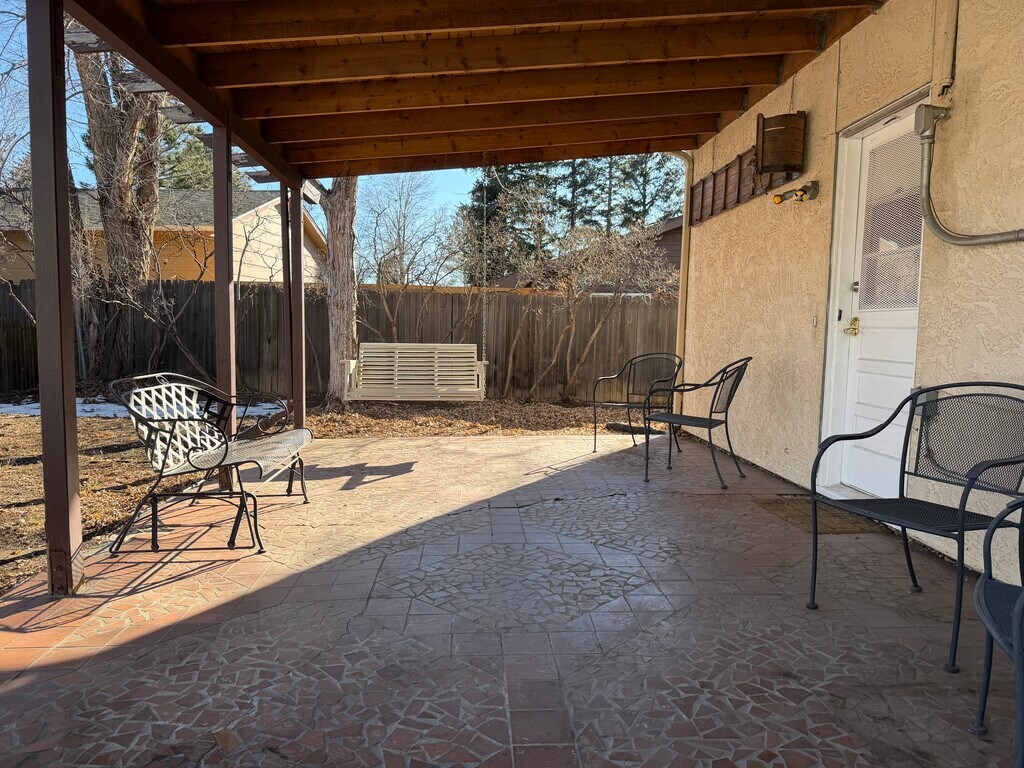 Ready for move in! Furnished 4bd, 2ba home available for immediate move in! Utilities included! $2900/mo. Located on the west side of Colorado Springs. Close to Garden of the Gods (visible from the house!), easy access to the mountains, Old Colorado City, shopping, food, and activities! Walking distance to Howbert Elementary School. Less than five minute drive to Coronado High School and Holmes Middle School. Two bedrooms are on the main level, along with a bathroom, living room with fireplace, and kitchen. Bedroom 1 faces the morning light, has views of the mountains, a king bed, and two closets. Bedroom 2 has two twin beds which could be altered to a bunk bed with trundle drawers and a standard closet. Single garage parking is attached to the main level of the home. Additional driveway parking available for a total of five cars. Lower level of the home has two bedrooms, bathroom, spacious laundry and storage, and additional living room with game table. New carpet in living and bedrooms. Bedroom 3 is spacious with a queen bed and partial walk in closet with built in shelving. Bedroom 4 has a full bed with two standard closets (one closet as built in shelving). The front patio has space for seating and beautiful views of the mountain range. The back patio is covered with a solid pergola and offers ample space for furniture. The back yard is fenced with a storage shed. Alley access and the detached garage will remain in use by the owner. Pets up to 40lbs welcome. Limit two. Standard utilities are included- water, electric, and trash service. Online application and background check are required. No smoking, vaping, drug use.