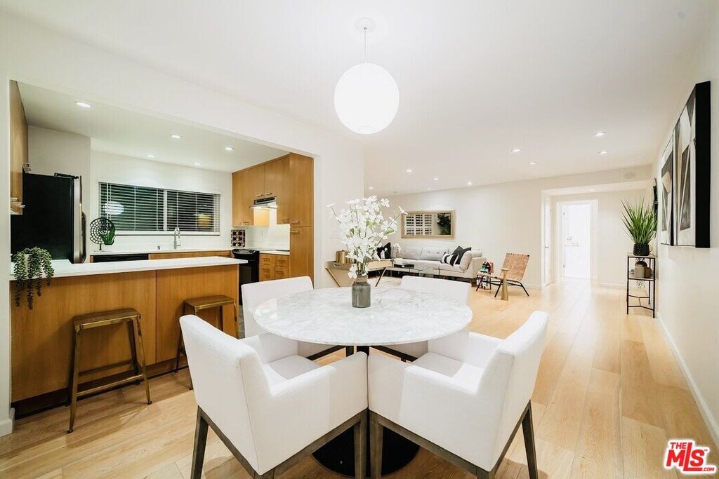 Teva Leasing is proud to present this furnished 1BD/1BA condo in prime West Hollywood. Situated in the heart of the Design District, just up the street from Urth Caffe, steps to fine dining, and moments from world-class shopping and nightlife this is one of West Hollywood's most sought-after locations. This modernized residence is in a well maintained mid-century building. Positioned on the second floor with a north-facing orientation, it offers excellent natural light and privacy. The spacious and versatile floor plan includes a separate living room, dedicated dining area, and space for a home office. Fully remodeled, the condo features a stunning kitchen, a timeless Carrara marble bathroom with separate shower and soaking tub, private in-unit laundry, wide-plank hardwood floors throughout, and recessed lighting. The building offers a welcoming lobby, pool and lounge area, and 1 secured/gated parking space. Tenant pays utilities. Can be unfurnished too. MLS# 25610251