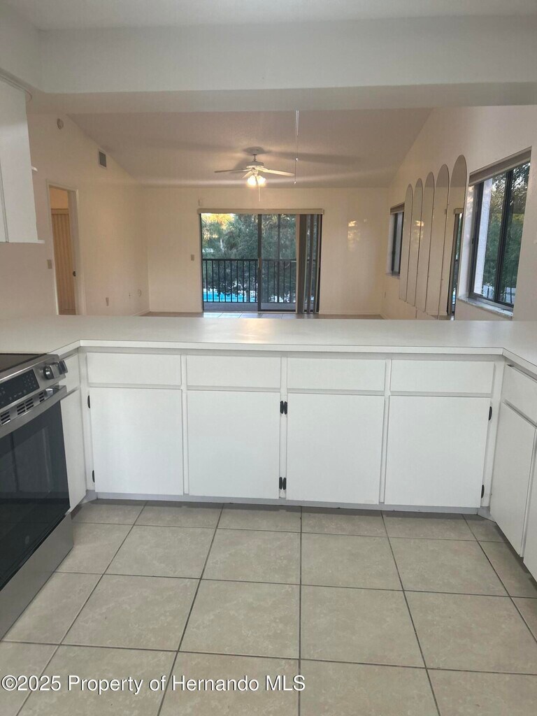 Outstanding Location pool side with views from the 300 sq, ft screened lanai. Rare 2 bedroom 2 baths freshly painted end unit located on the second floor conveniently steps from the dedicated covered parking in beautiful secluded sought after gated River Run nestled between 10,000 acres of nature preserve and the crystal clear Weeki Wachee River. The residence features an open & inviting floor plan, boasts a vaulted ceiling, inside laundry with brand new washer/dryer, spacious kitchen with brand new appliance package, ample cabinetry, large counter bar and light & bright breakfast nook with views of the nature preserve. Master bedroom with ensuite bathroom has access to the private screened lanai overlooking the sparkling heated pool & spa. Relax and enjoy the unsurpassed life style on the river and private beach. Beautifully landscaped and maintained common grounds, clubhouse that offers exercise equipment, fully equipped kitchen for those special occasions and the gazebo overlooking the river with grilling stations and firepit. Rent includes water/sewer, trash, cable tv and wifi. River Run is secluded yet minutes to shopping, beaches, golf, upscale dining, excellent medical facilities and easy access to Tampa International Airport. Condo is available for immediate occupancy.