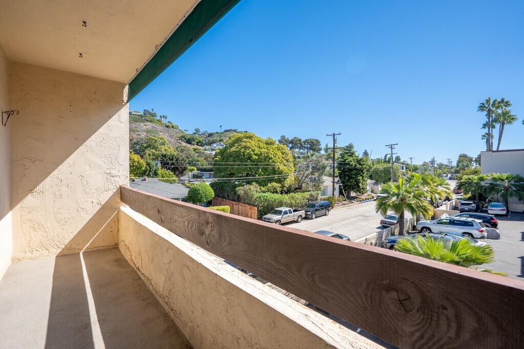 This beautiful, updated, sparkling clean 2-bedroom, 2-bathroom condo is available now. Located in La Jolla's coastal community just steps from Windansea Beach and only one mile to charming Bird Rock community and two miles to La Jolla Village and Cove areas, this home offers both an unbeatable location and high-end features rarely found in this complex. As a rare corner unit, it features a window in the kitchen and is positioned to face south and east providing abundant natural light and added privacy away from La Jolla Blvd. The kitchen is updated with high-end cabinetry, granite countertops and sink, updated appliances, and artistically expands into the living room area, providing ample storage and an additional bar area with seating and pass thru from main kitchen. The bathrooms are updated and the master features a large walk-in closet from California Closets. Each room has large floor to ceiling windows with nice window treatments. The unit also has a private balcony facing the lush hillside. There are ceiling fans in both bedrooms and living room. The condo includes one covered parking space, access to on-site laundry facilities, a private storage container, full use of two pools and two hot tubs within the community, and a fitness center and sauna. No pets are allowed. First month's rent and security deposit are due at lease signing. Applicants must have a minimum credit score of 680 and a rent-to-income ratio of 2.5 times the monthly rent. Act quickly to snag this opportunity to live in one of La Jolla's most desirable neighborhoods! - Water and trash is covered by landlord - Renter is responsible for gas and electric - No smoking in the unit (and community is smoke free)