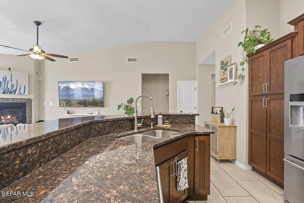 Welcome home to this stunning Accent residence in the highly desirable Upper Valley,nestled in the Rio Valley subdivision just one block from the park. This beautifully maintained home features 4 bedrooms and 3 full bathrooms,complemented by manicured landscaping that delivers exceptional curb appeal. Inside,an open-concept layout with soaring ceilings creates a bright,inviting atmosphere from the moment you walk in. The spacious family room,complete with a cozy fireplace,is perfect for hosting game days or relaxing movie nights. The kitchen offers an abundance of granite countertop space and cabinetry ideal for both everyday living and entertaining. Step outside to a fully finished backyard designed with intention,featuring a custom-built pergola,low-maintenance artificial turf,and a stylish fire pit perfect for gatherings year-round.