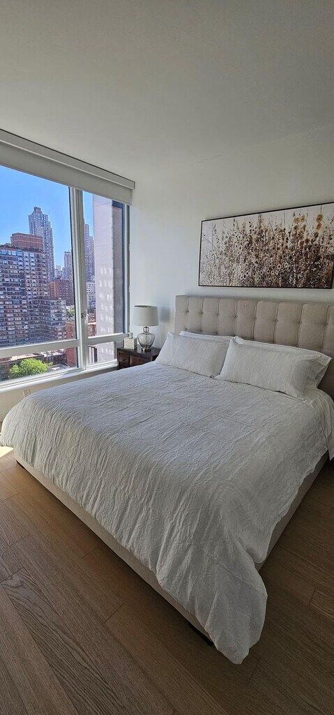 Feel at home in this spacious and serene 2-bedroom/2-bathroom apartment in Midtown West, offering beautiful views of the Hudson River and surrounding buildings. This apartment comes with a large private terrace. This gorgeous corporate apartment is designed for luxury stays in a residential building. You will be registered as a guest of the owner. The building is easy going and peaceful. Smoking is not permitted on the terrace. [SI]