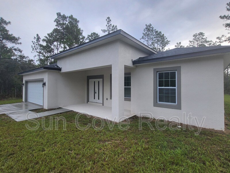 Beautiful Brand New Home Move-In Ready! Welcome to this stunning 3-bedroom, 2-bath home in Citrus Springs, Enjoy an open, bright, and airy floor plan designed for both comfort and style. The kitchen and bathrooms are finished with sparkling quartz countertops, modern wood cabinetry, and a complete stainless steel appliance package. The primary suite includes a luxurious bathroom with dual showers, while both bathrooms feature floor-to-ceiling ceramic tile. Additional highlights include a laundry room with sink hookup, a large covered front porch, and an expansive screened lanai perfect for relaxing or entertaining. Located in the desirable Citrus Springs community on Floridas Nature Coast, this home offers a high quality of life surrounded by natural beauty and small-town charm. Security deposit of one months rent, Application fee and pet fee/rent. Pet's must be approved by owner.