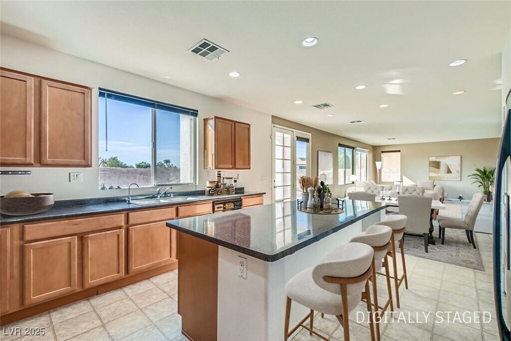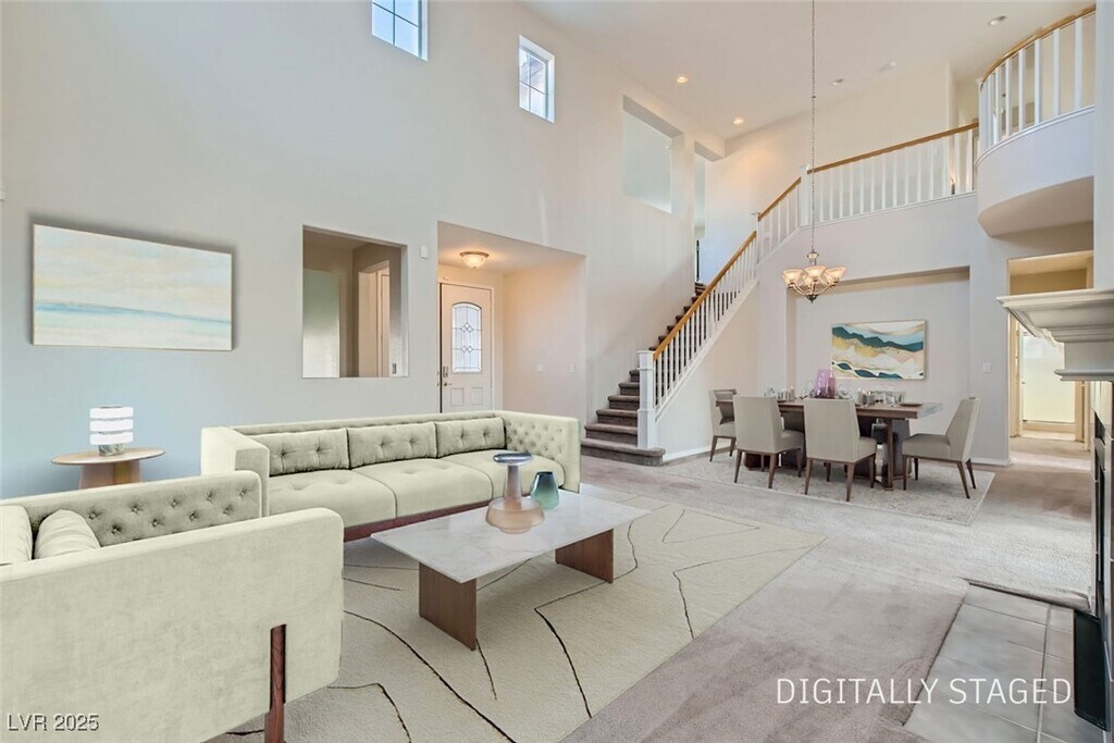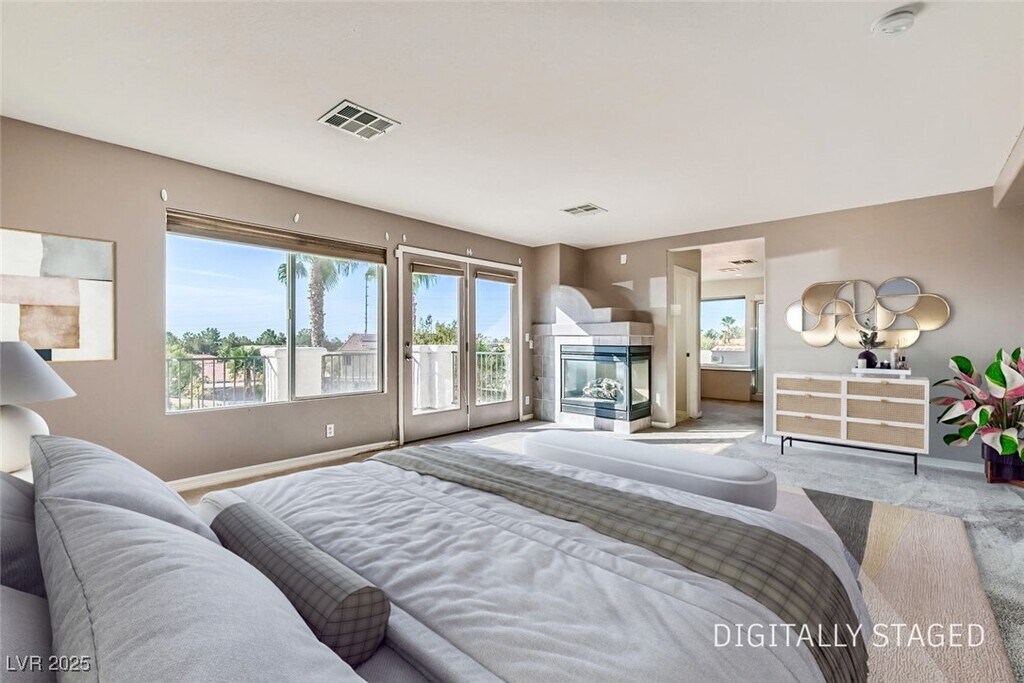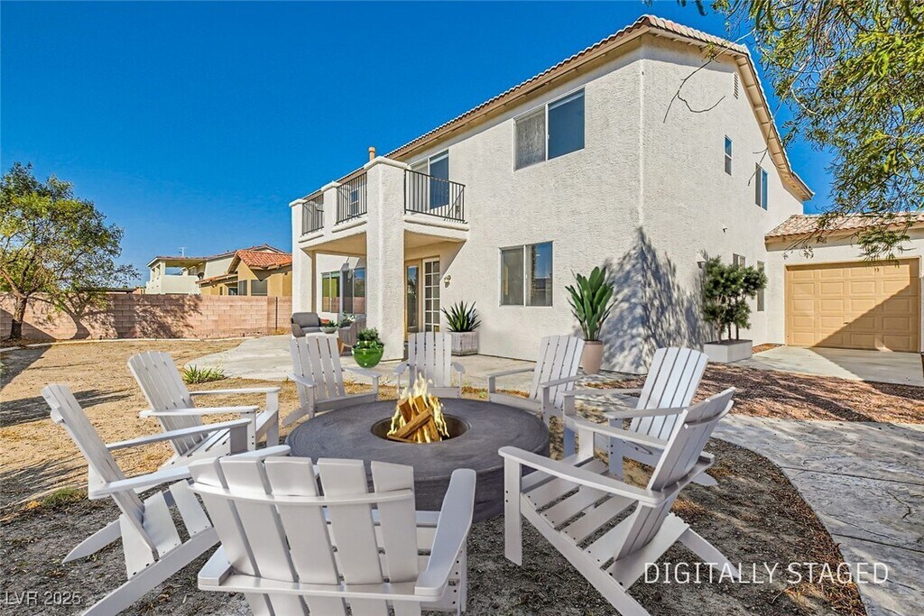 Discover this stunning estate nestled in the picturesque Eldorado community near Aliante in North Las Vegas. This expansive home boasts four spacious bedrooms, three bathrooms, and a grand loft, offering ample space for both relaxation and entertainment. The master suite is a true retreat, featuring a cozy fireplace and a private balcony that provides breathtaking, unobstructed views of the Las Vegas Strip. The heart of the home is the massive kitchen, equipped with an oversized island, abundant cabinetry, a walk-in pantry, and elegant French doors that open to a covered patio—perfect for indoor-outdoor living. Additional highlights include a generous four-car garage, a comfortable living room and family room, and a covered patio ideal for outdoor gatherings. Residents enjoy access to parks, walking trails, and top-rated schools, all within a serene suburban setting. Experience the perfect blend of luxury, comfort, and convenience in this exceptional Eldorado estate.