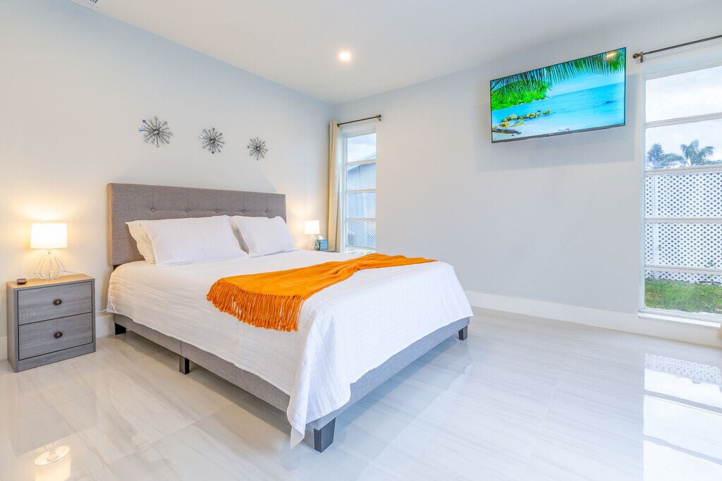 Experience luxury and feel at home in this newly renovated 4-bedroom villa in Margate, the ultimate base for large groups and families. This open-concept home is designed for gathering and features a stylish living room with a huge smart TV, an elegant dining table, and a breakfast bar. The chef’s kitchen is fully equipped with stainless steel appliances and a coffee station. Enjoy the private backyard oasis with a refreshing swimming pool, sun deck with loungers, and an outdoor area with furniture and a BBQ grill. Amenities include high-speed Wi-Fi and an in-unit washer and dryer. Free driveway parking is available and fits multiple cars. Early or late access is available upon request for a fee of $50 to $250. Centrally located in a quiet, safe neighborhood, this villa is 5 minutes from Starbucks, grocery stores, and restaurants, 10 minutes from Seminole Coconut Creek Casino, 15 minutes from Butterfly World & Parks, and 20 minutes from Pompano Beach & Deerfield Beach. Fort Lauderdale International Airport is 30 minutes away. No parties, events, or indoor smoking are allowed. Quiet hours are enforced outdoors. Pets are welcome with prior approval only. The primary guest must be 21 or older. Guests are responsible for missing items, damages, or plumbing clogs due to misuse. [SI]