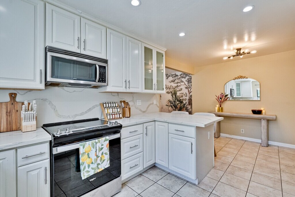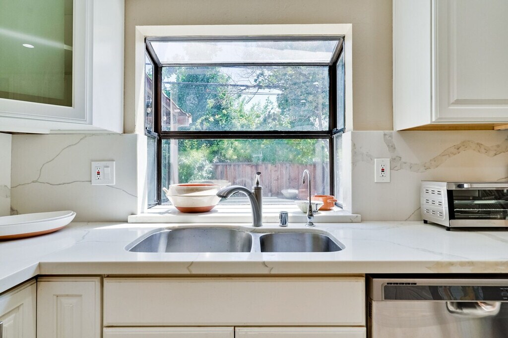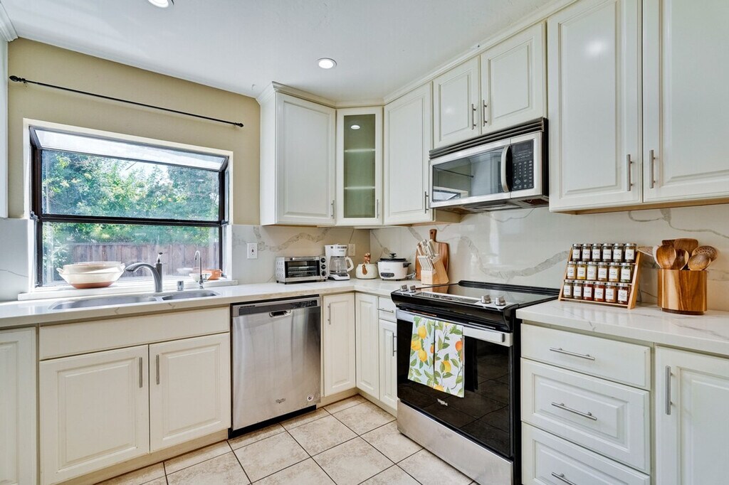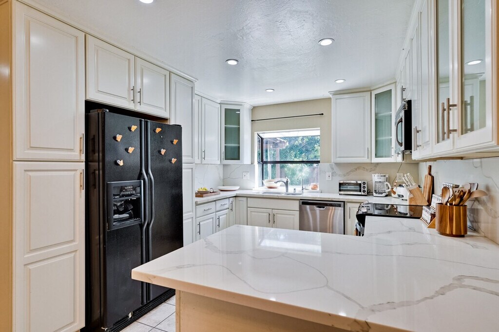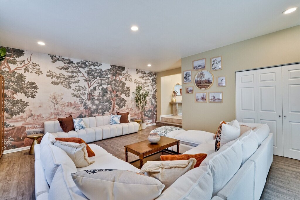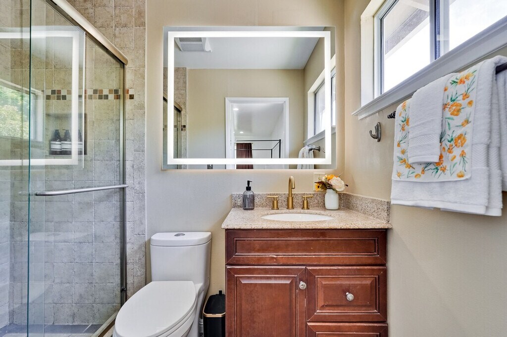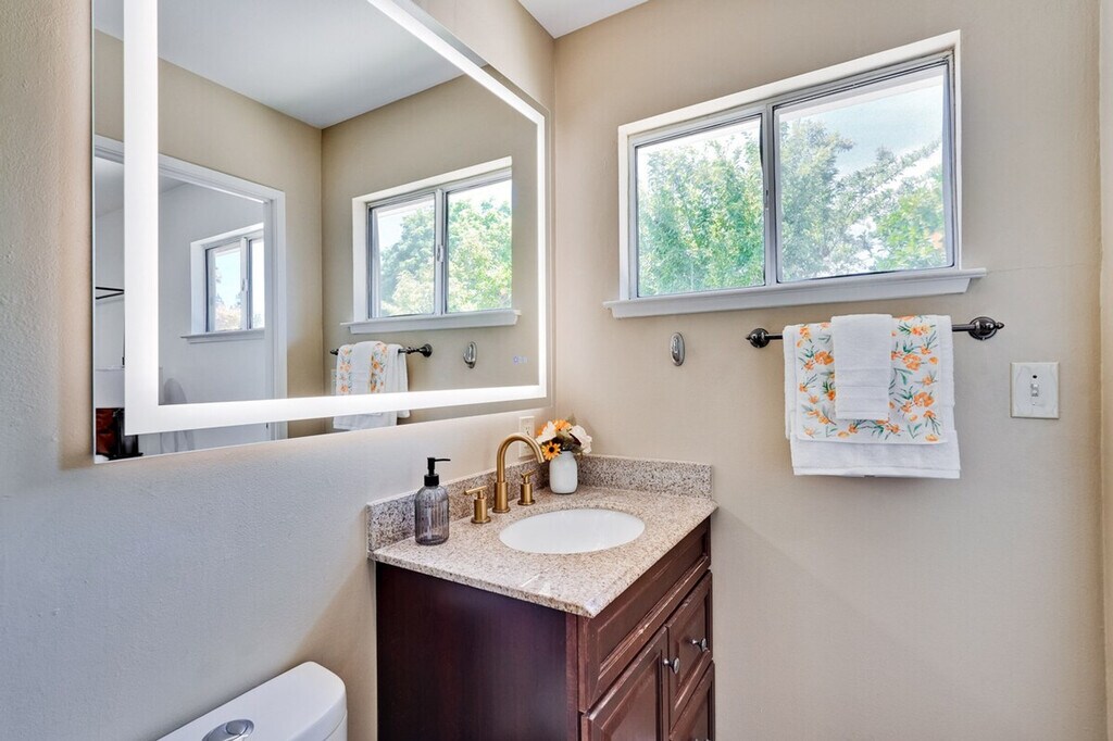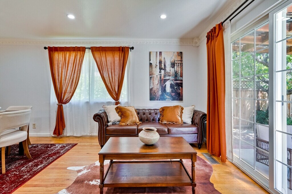 Step into style and comfort at this 4-bedroom retreat in Almaden, San Jose. The heart of the home is a thoughtfully curated library lounge designed with cozy seating, warm lighting, and a handpicked book collection, perfect for unwinding or quiet inspiration. Outside, a private backyard awaits with citrus trees including lemon and orange and serene seating. Great for families, friends, or creatives seeking calm and charm. Embrace timeless Italian charm through earthy tones, textured finishes, and classic elegance throughout the home. Enjoy restful nights in thoughtfully designed sleeping spaces with luxury linens and serene ambiance. The master bedroom features a king canopy bed and private master bath, while two queen rooms and a full room offer cozy and inviting spaces. Refresh in spa-inspired bathrooms styled with dual large mirrors and curated amenities. The fully equipped kitchen is perfect for whipping up a quick breakfast or hosting a group dinner, complete with a rice cooker, water kettle, coffee maker, and more. This property includes a utility room with a washer and dryer, and complimentary detergent is provided for your convenience. Nestled in Almaden’s serene neighborhood, this home is just a 5-minute drive from Costco, Safeway, Target, and top restaurants. Enjoy the convenience of nearby local cafes, family-run Italian spots, and casual eats, as well as gyms like City Sports Club and 24 Hour Fitness. The property is designed for serenity and socializing, with a backyard that serves as a private oasis. Enjoy the large lawn ideal for picnics, yoga, or family games, and challenge friends and family to a fun game of cornhole on the lawn. The library lounge offers a perfect space for work or relaxation, featuring velvet armchairs, large bookshelves with handpicked titles, and warm lighting. A laptop computer is not included.