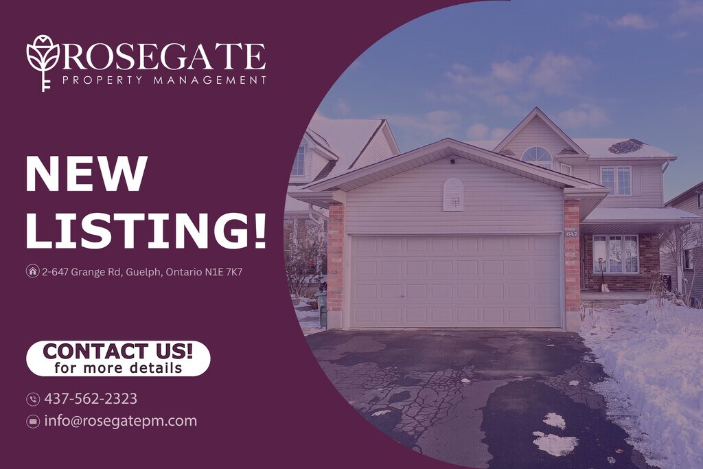 Bright 2-Bedroom Basement Apartment with Front Porch & 2 Parking Spots in Guelph Welcome to 2-647 Grange Rd, a spacious 2-bedroom basement apartment offering 850 sq. ft. of comfortable and functional living space in a quiet, family-friendly neighbourhood. Ideal for small families, couples, or working professionals, this unit provides excellent value and modern living in East Guelph.The apartment features an open-concept layout, a well-equipped kitchen, a full 1-bathroom, and generously sized bedrooms — including a primary bedroom with a walk-in closet for added storage and convenience. The unit is well-lit and thoughtfully designed to maximize comfort.Enjoy the added perks of 2 dedicated parking spots and your own front porch area, offering a cozy outdoor space to unwind. Close to schools, parks, groceries, public transit, and everyday essentials, this basement apartment delivers both comfort and convenience in one inviting package.