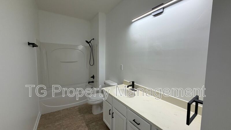 Welcome to this stunning and well-maintained 4-bedroom, 3-full-bath ranch-style home in the Greenland Chase community. This beautifully updated home offers modern comfort and thoughtful design throughout. Inside, enjoy stylish LVP flooring in the main living areas and plush carpet in the bedrooms, complemented by modern fixtures and fresh paint. The kitchen features sleek stainless steel appliances, while the primary suite boasts a walk-in closet, a relaxing soaking tub, and a separate walk-in shower. Step outside to a spacious backyard and unwind in the screened-in lanai—perfect for entertaining or enjoying peaceful evenings. Additional highlights include a two-car garage and access to fantastic community amenities such as a resort-style pool, soccer field, and scenic walking paths. Exterior update coming as soon as home is occupied: the home’s exterior will be freshly painted in a crisp white with rich espresso brown accents. Home will be ready for a February move in. Amenities: community pool, soccer field, stainless steel appliances, lvp flooring, walk in shower, walk in closet, two car garage, soaking tub, 2 car garage, freshly painted, screened in lanai, carpet in bedrooms, spacious backyard, walking path(s), modern fixtures