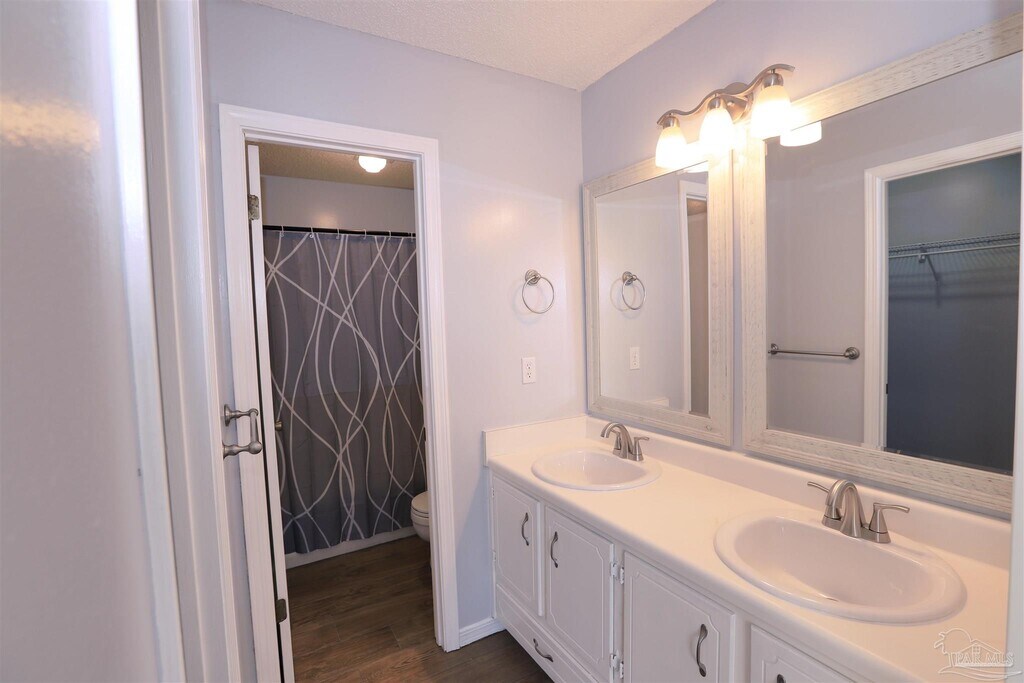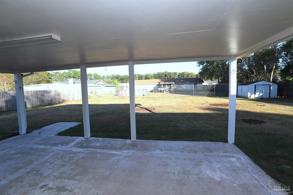 Move in ready 3 Bedroom/2 Bath home located in a quiet neighborhood . Freshly painted and all Wood looking Tile throughout,featuring a large master bedroom with walk in closet,New double vanities and a separate private bath. There are 2 bedrooms on the other side as well as a Great room with a wood burning fireplace. Also has a eat in kitchen who's dining area leads out to a covered patio and a large privacy fenced yard. The kitchen is equipped with a New stove,dishwasher,fridge,and New microwave oven. Other features include a 2 car garage & separate laundry room. Located just minutes from NAS Pensacola,the Naval Hospital & Exchange Mall,the beautiful white beaches of Perdido Key,and area shopping. Sorry No Cats!