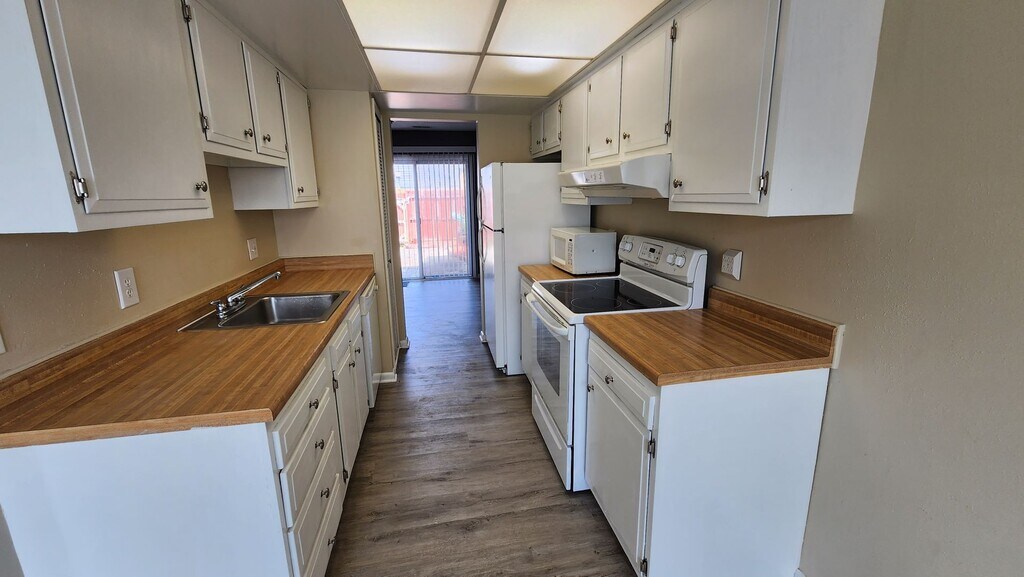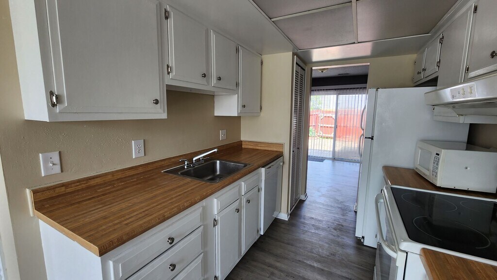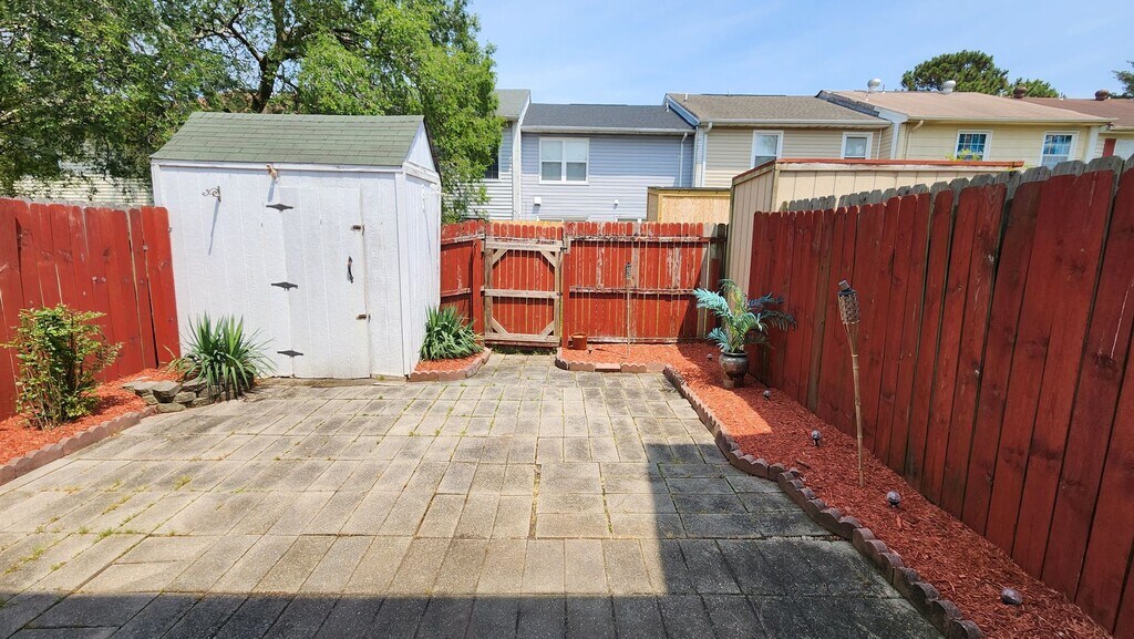 Cute Townhouse with two spacious bedrooms and 1 Full Bath & 1 Half bath. MOVE-IN READY, AVAILABLE NOW! Featuring foyer entry, a large living room with sliding glass doors access to the fenced-in backyard, outdoor patio and storage shed. Great kitchen with a spacious dining area nook & Pantry. White appliances include electric range, dishwasher and refrigerator. Entire downstairs has Luxury Vinyl Plank laminate flooring. Carpet upstairs. 2nd floor features 2 spacious bedrooms and a full bath. Bonus room has been used as a small office, or fantastic closet space for all your storage needs with ample space for dresser, desk, or armoire. Parking space for 2+ cars. No HOA/POA. Centrally located near community parks, shopping, and restaurants with easy access to interstates and military bases, beaches, college & hospitals. Visit to apply.