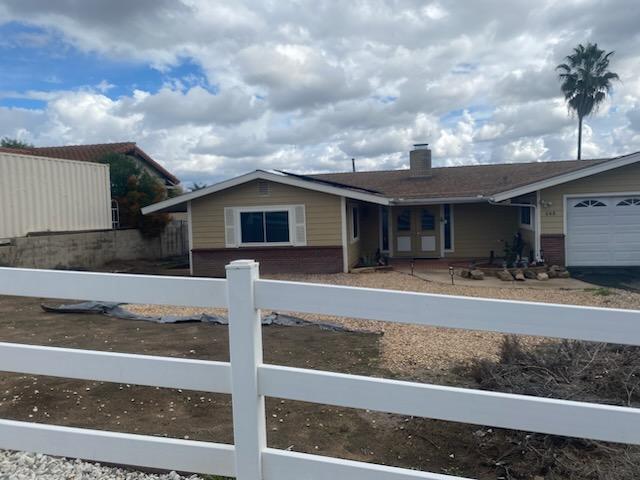 SPACIOUS FALLBROOK BEAUTY! Owner Occupied, Move-in-ready for the New Year!! Well maintained by owners. Home is 1,806 sqft w/ 3 bedrooms and 2 baths on . 33ac lot. East/West view. Huge lot with white rail fencing. Lots of upgrades throughout: Newer dimensional shingle roof. Newer HVAC (top of the line Lennox central A/C and Heat units (16 seer two speed 3.0 Ton-4 yrs, ) w/ Wi-Fi thermostat. Dual pane windows and sliders thru out. Updated kitchen with granite counters, Island, garden window, custom wood cabinets w/ lights, roll out drawers, LED recessed lighting and Solar Tubes, Walk-in pantry w/ etched glass door. GE Profile and Kenmore Elite appliances, built-in wine chiller and convenient "insta-hot" faucet at sink. "Wood plank" porcelain tile flooring newer baseboards, ceiling speaker. Huge stone fireplace with efficient wood burning insert stove w/ gas hook ups. Family room hardwired for surround speakers. Completely remodeled hall bath w/ glass enclosure, dual sinks, custom cabinets. Updated master bath with 2 person deep tub and travertine floors. Newer carpeting in all 3 bedrooms and paint throughout. Crown molding in master suite. Back yard features: Pool size fenced back yard with dog run. Gas plumbed to outdoor fireplace (ready for outdoor kitchen setup). Working spa, 3 garden sheds and automatic sprinklers front and back. Outdoor speakers and misters for those hot days. Seamless rain gutters front & back. Attached 2 car garage with lots of extra storage shelves. Attic access with pull down ladder. Washer /dryer Included Gas water heater Extra large driveway can accommodate RV/boat/trailers, etc. Security cameras covering all around outside of house included. Owners have added EXTRA STORAGE, LOW MAINTENANCE YARD. NO Grass now but owners may split front with rocks and grass. LARGE backyard with a Crestone Wall. Property is on a private road maintained by the residents. Included are: Kitchen refrigerator and wine chiller Inc.. All Conveniently located close to schools. PETS OK with owner approval and additional Deposit. NO AGRESSIVE BREEDS! EMAIL or TEXT ONLY LAURIE with INFO about your household and move-in date. . NO PHONE CALLS PLEASE! CREDIT SCORES below 700 will NOT BE CONSIDERED. Bedrooms: 3 Bathrooms: 2 Full bathrooms: 2 Heating Forced air, Electric, Gas Cooling Central A/C Appliances Included: Dishwasher, Garbage disposal, Range / Oven, Refrigerator Laundry: Gas Dryer Hookup, In Garage Features Recessed Lighting, Granite Counters Flooring: Tile, Carpet, wood Doors: Double Door Entry, Sliding Doors Windows: Double Pane Windows, Garden Window(s) Has fireplace: Fireplace features: Living Room, Gas Starter, Blower Fan, Heatilator Interior area Total interior livable area: 1,806 sqft Parking Total spaces: 5 Parking features: Garage - Attached Features Spa features: Private, Above Ground, Permits, Fiberglass Fencing: Chain Link, Partial Has view: of City, Mountains