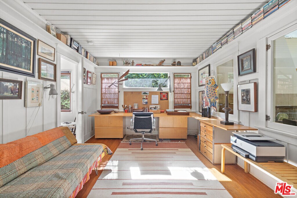 California Craftsman Bungalow located on Palms, a block away from Abbot Kinney shops and restaurants. This 2 bedroom, 3 bathroom home is perched above on one of the best streets in Venice, and has a den/parlor & study/office - perfect for working from home! Beautifully landscaped with a sun drenched open floor plan, featuring new hardwood floors and central air conditioning. The living space opens onto a large deck that's very private, creating a wonderful indoor-outdoor flow. A great, meditative home which is also perfect for entertaining, enjoying the fresh ocean air and catching sunset views. Completing the quintessential Venice dream are the updated smart kitchen and bath, along with the bedrooms that share a private patio in back. Adjacent to the picturesque Walk Street District, and moments away from everything Venice has to offer - Erewhon Organic Grocer, Abbot Kinney Blvd, Rose Ave, & the beach! This one's a gem! MLS# 26643791