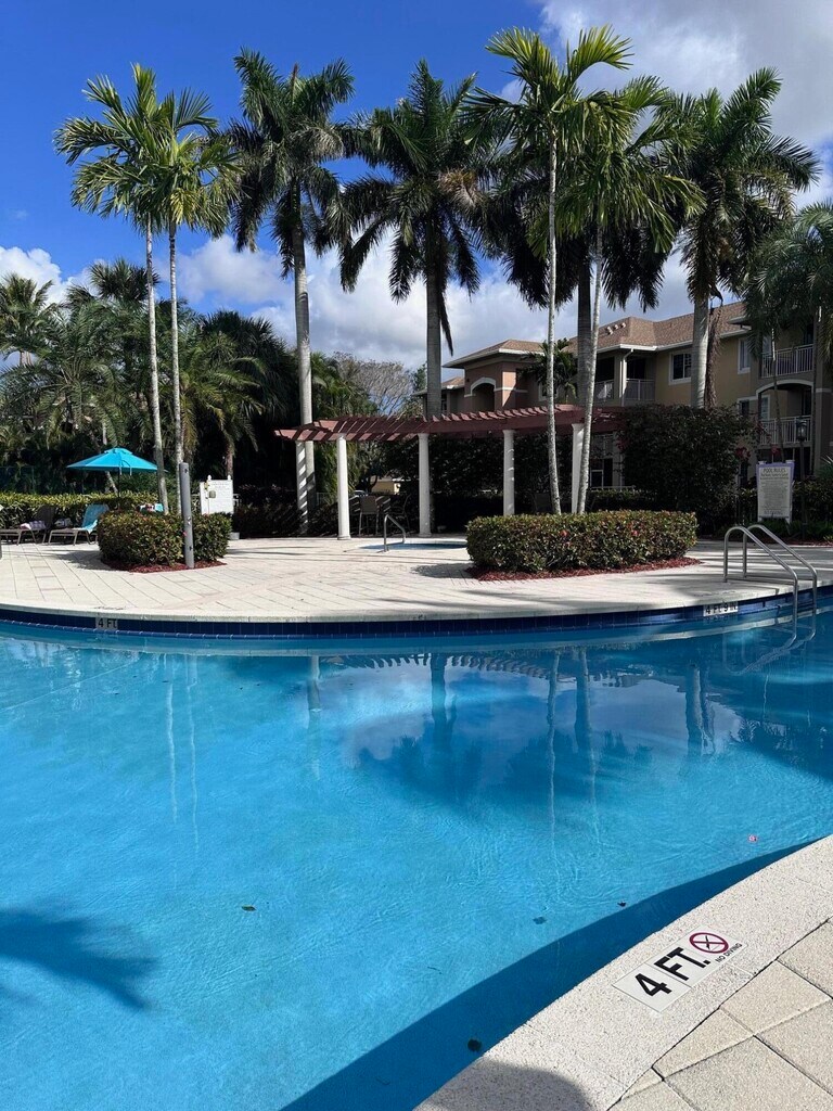 Light and bright,spacious third floor unit( no neighbors on top) with 1 carport and 1 open parking space. located in the desirable Villas at Emerald Dunes.High impact windows and move-in ready,this condo features tile through the whole unit,except the 2 bedrooms with a nice laminated wood.A large laundry room with washer and dryer and open space for storage .Granite countertops,new fridge,microwave oven and AC unit.Has a patio to enjoy the nice breeze,and also comes with a storage closet and concrete floor. Water and basic cable is included in the rent. Enjoy resort-style amenities including two swimming pools,hot tub,tennis courts,fitness,and Business center,clubhouse.Fast approval with good credit. Please send complete package,Contract to lease,rental application,DL,Credit reports,copy of last 2 pay stubs.Need to apply to the condo association GRS Community Management to get approval.Will take between 2 or 3 weeks. All ages community. Credit report for anyone over 18 years old. First month,last and security deposit to move in.Tenant's insurance required.SHOWINGS AFTER APRIL 28 MLS ID B26011893