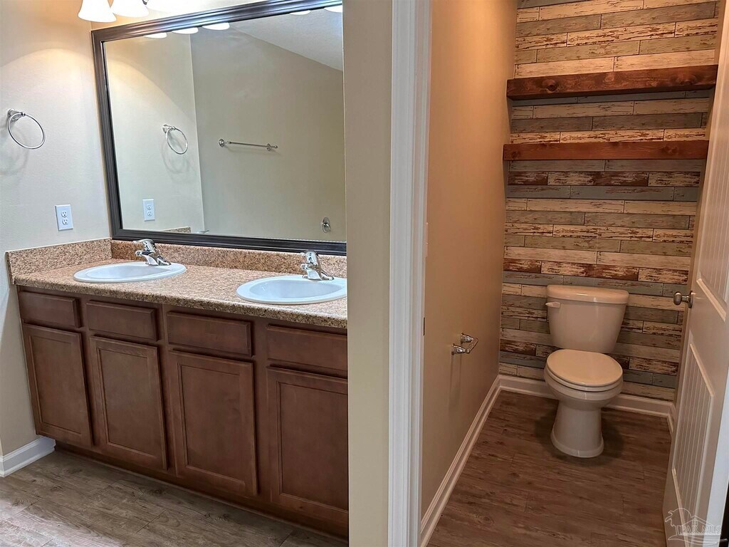 Welcome Home!!! This 5 Bedrooms,3 full bath beauty is ready for your family with fresh paint and brand-new carpet in all the bedrooms. Large open floor plan with plenty of room for everyone and is perfect for entertaining family and friends. A grand foyer leads to the great room /dining room that over-looks an over-sized kitchen with nice appliances,a large walk-in pantry and breakfast bar. Located off the kitchen is the 5th bedroom and a full bath. Upstairs is a Spacious master bedroom with huge walk-in closet,master bath with double vanities,garden tub and separate shower. A bonus /sitting area is just off the master bedroom. You'll also find three additional bedrooms,full bath with double vanities and laundry room with washer and dryer. Great backyard with privacy fence and a deck / patio area for grilling and entertaining. Conveniently located to Whiting field,shopping,dining and more. Call today for a personal tour!