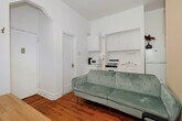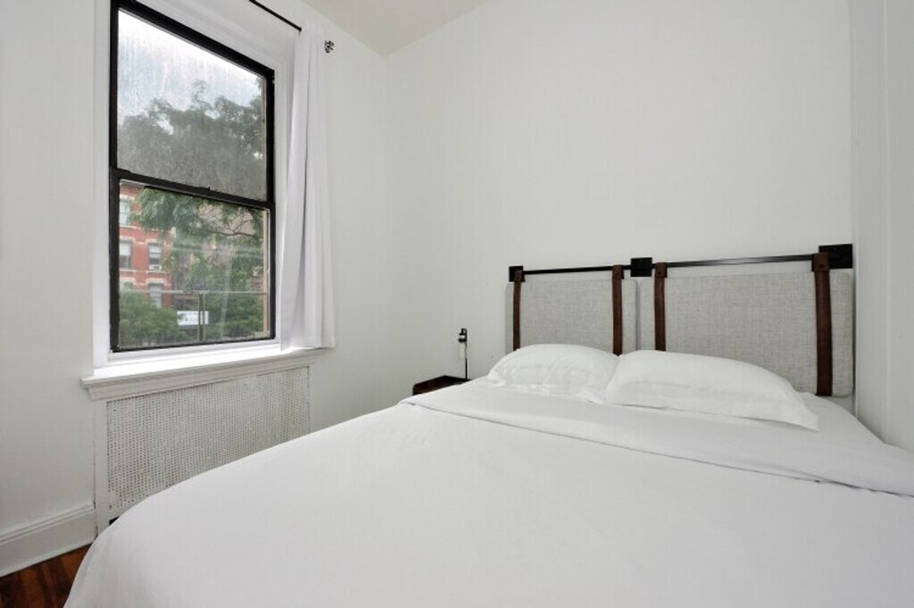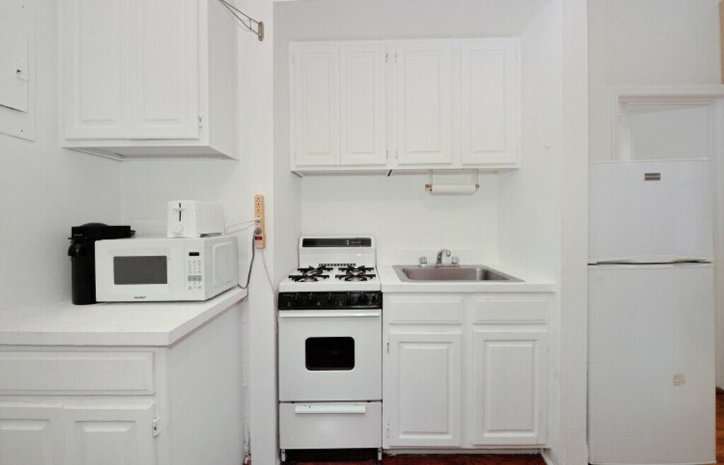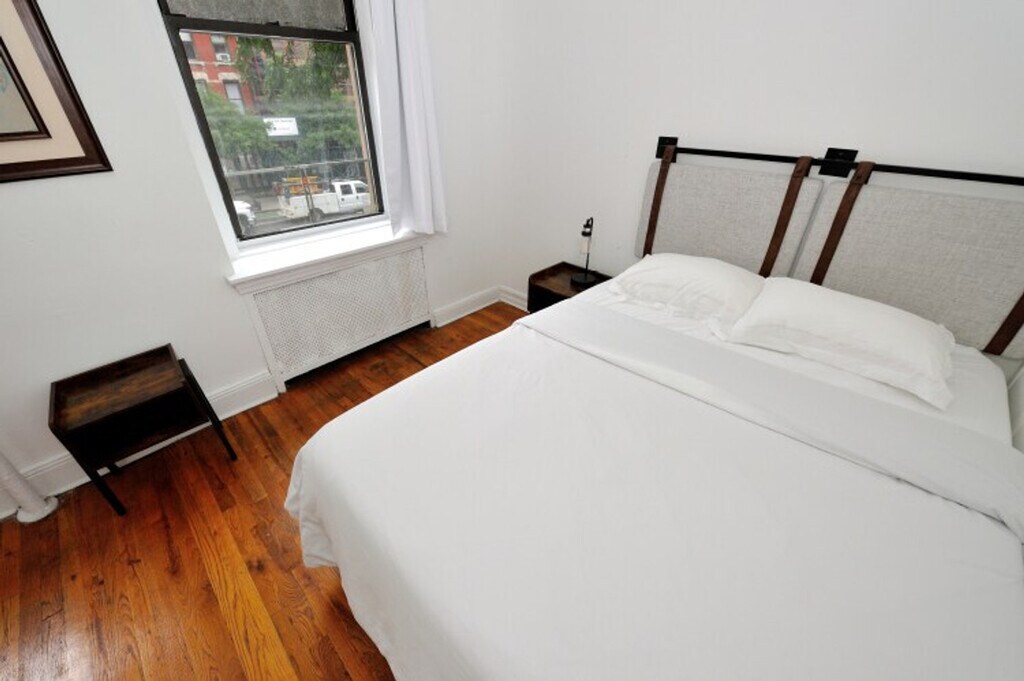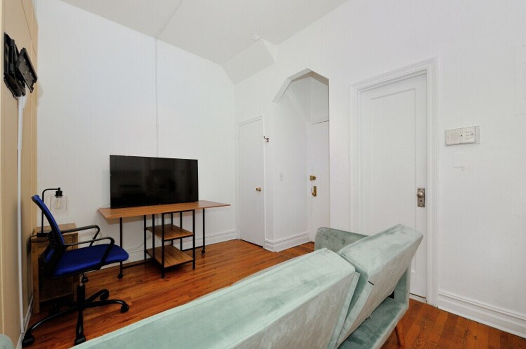 Feel at home in this charming Midtown West 2-bedroom, 1-bathroom furnished apartment. This centrally located home is fully equipped with all the basics and necessities for your convenience. This large and roomy apartment hosts up to five guests comfortably in the heart of New York City. Relax in the large living room, with a futon and bright accents that liven up the clean and simple brown and white decor of the space. A dining area is also included and features seating for five. In the kitchen, you’ll find everything you need to prepare a meal at your home away from home, including a stainless steel refrigerator, stove, microwave, toaster, coffeemaker, utensils, and dishware. Located near Hell’s Kitchen, this apartment is just blocks away from NYC must-sees including Times Square, Central Park, Hudson Yards, and The High Line. This quiet building offers plenty of dining and nightlife options just steps from your door, and nearby subway stations make it easy to travel if you plan to venture out further around the city.