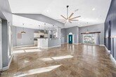 Stunning home with high end features! This 2,000 Sq Ft block home features soaring ceilings,giving this home a grand feel and appearance inside and out. The open and split floor plan is centered by the massive living area,dining area and kitchen with stainless steel appliances and new granite countertops. The oversized master suite features a tray ceiling with accent lighting and large master bath with travertine floors,his and hers sinks,jetted waterfall jacuzzi tub and a large shower with 3 shower heads. The Rear guest bedroom has convenient entry to the guest bathroom. Large back porch with a spacious backyard! New roof paint and gutters in 2020. 8x8 Shed installed in 2020 as well.