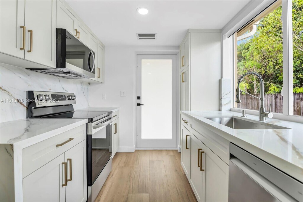 Location, location, location! Come and check this beautifully 1,334 squarefeet completely remodeled 3- bedroom, 2-bathroom home with modern and great finishes. It features new impact windows and doors, new porcelain tile, new elegant kitchen and bathrooms. Enjoy a sleek modern kitchen with custom cabinetry, stainless steel appliances and quartz countertops. All closets are built in. Natural light fills the spacious living areas. The property offers a lovely, spacious backyard approximately 5,775 squarefeet that is great for entertaining. Very conveniently located near Bird Road, Coral Gables, South Miami hospital, Palmetto highway, plazas, restaurants and many more... don't miss this opportunity!