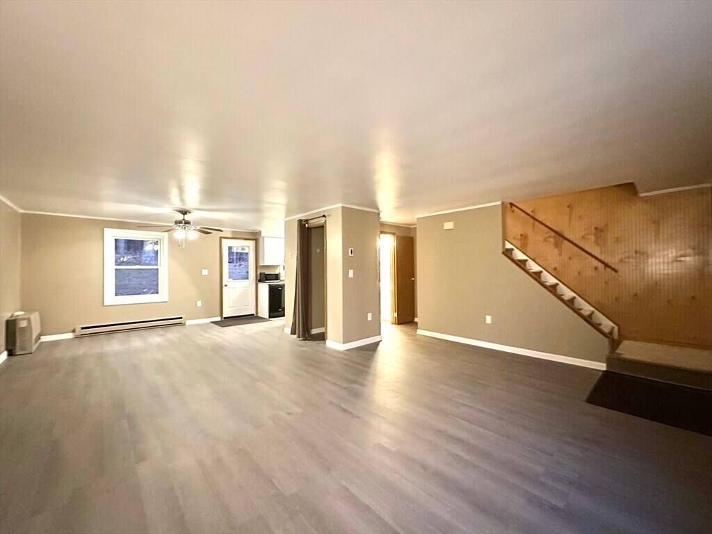 Spacious and nicely updated 3-bedroom,1 full and 1 half bath apartment located in a quiet setting. This unit features an open floor plan with a bright living room and dining area,and an updated kitchen equipped with stove,refrigerator,dishwasher,and microwave. Convenient first floor half bath and in-unit laundry in the basement with washer and dryer included. All three bedrooms are located on the second floor along with the full bath. The property also offers a large basement with bulkhead access,providing excellent storage space. Enjoy outdoor living with patio and yard space. Two dedicated parking spaces included,with additional room accommodating up to four vehicles. Electric and propane heat. Rent includes water,sewer,refuse removal,yard maintenance,and snow removal. Tenant responsible for propane,electric,cable,and renter’s insurance. Convenient location with easy access to local amenities,shopping,and major routes. MLS# 73479030