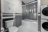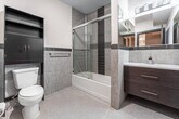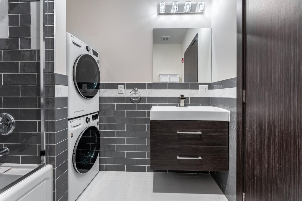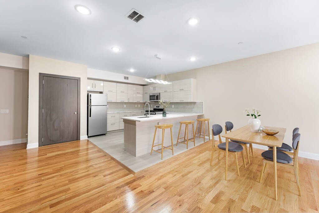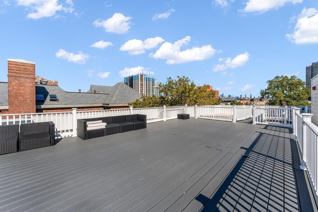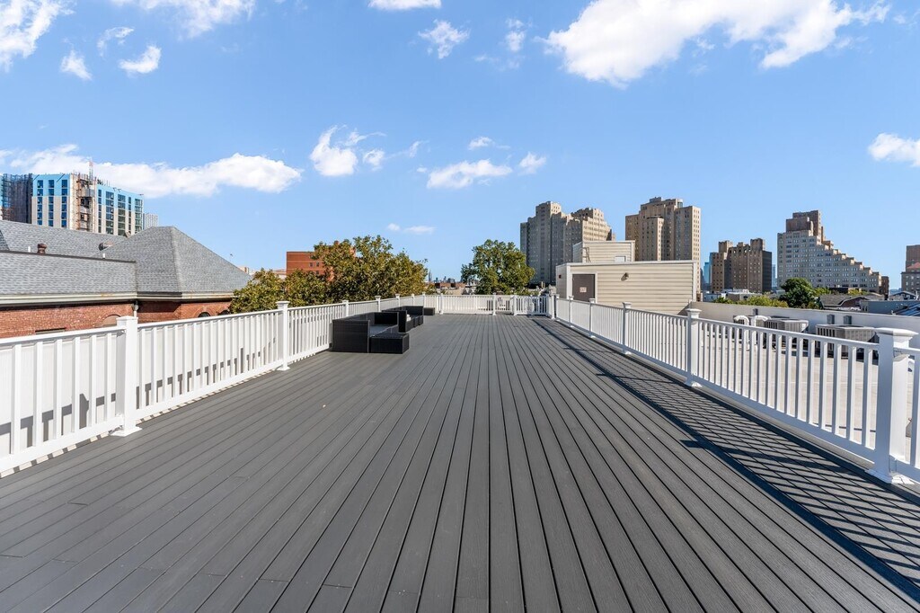 Welcome to this spacious and bright two bedroom, two full bathroom home in an elevator building at the heart of Journal Square. This home offers an amazing layout with over 1,134 square feet of living space and 10 foot ceilings throughout. Upon entering, be greeted by a new kitchen with a custom extended bar, featuring quartz counter tops, stainless steel appliances, inclusive of a dishwasher, with plenty of counter space and cabinets for storage! The living area is flooded with natural light from the sliding doors that lead out onto your own cozy balcony, creating a warm and inviting atmosphere. The primary bedroom is generously sized and offers a custom walk-in closet for all your storage needs. There you will also find the ensuite bathroom with a full jacuzzi tub, and front-loading stackable washer & dryer. Second bedroom is a true bedroom, can easily fit a queen-sized bed set, with an office desk, and has its own custom closet. Other highlights include bike storage, two outdoor spaces one can enjoy year round: a massive rooftop with 360 views including exceptional views of NYC, and on the ground, a fenced in yard with a grilling station and more lounge seating. Situated in Journal Square, you'll have easy access to the NJ Transit buses and PATH Station, making your commute a breeze! Parks, schools, restaurants and several shopping centers are also conveniently located nearby. For those with a car, one deeded garage parking spot is available for $150/month. Pets on case-by-case basis. Don't miss out on this incredible opportunity to call this place home!