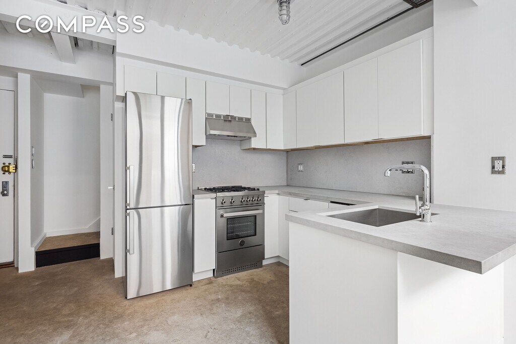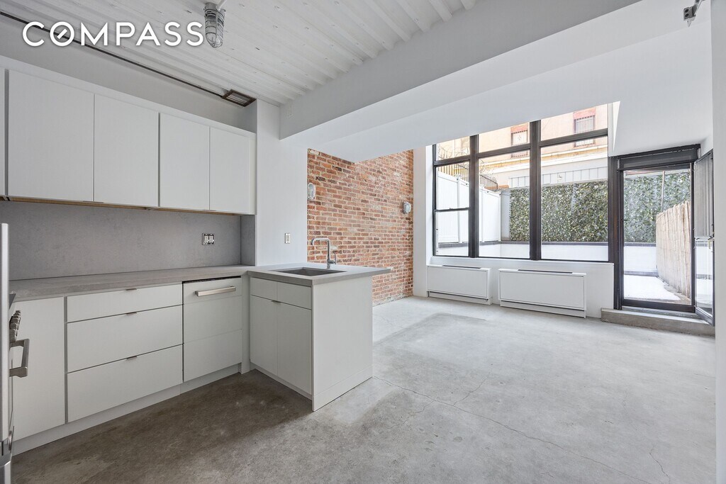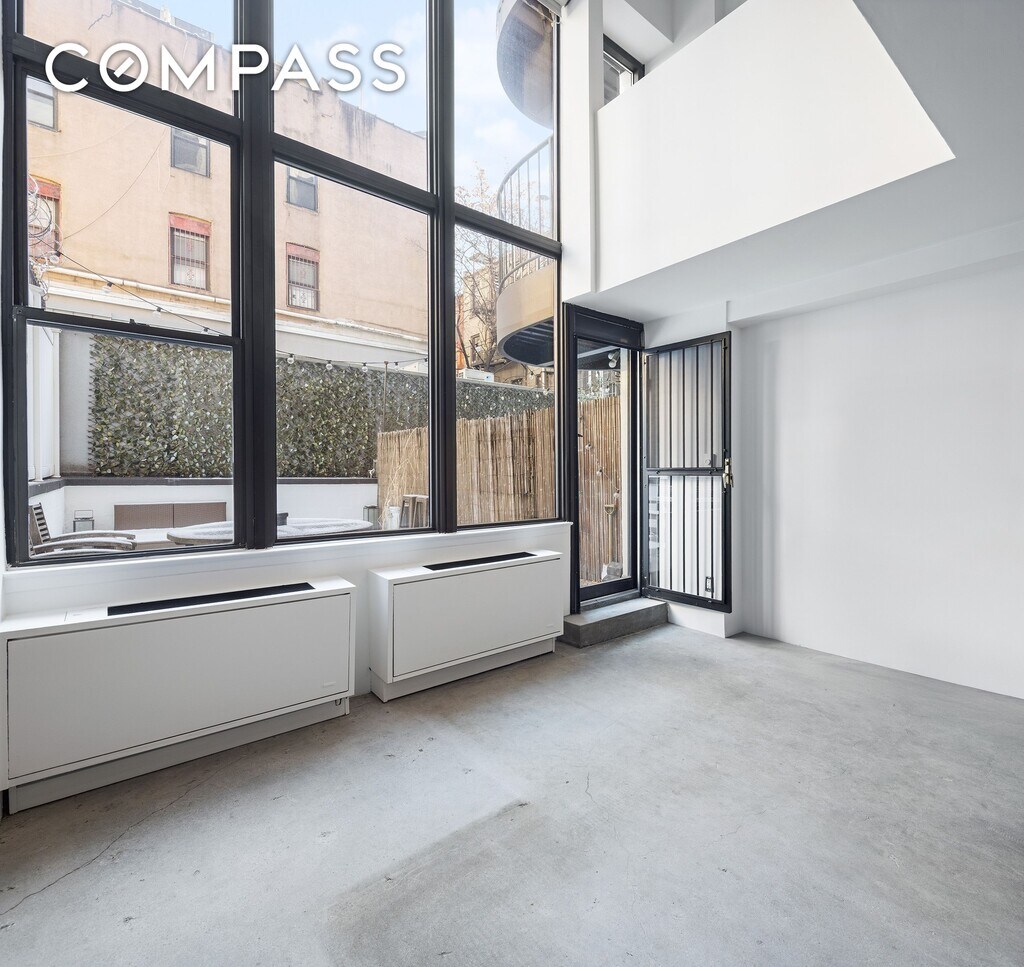 Duplex loft-style 1 bed, 1.5 bath with double-height ceilings, oversized windows, and private garden in the heart of the NOHO/East Village. The main living level features soaring ceilings, large industrial-style windows, and polished concrete floors, creating a bright, open great room with clear separation for living and dining. Exposed brick walls add character while maintaining a clean, modern aesthetic. The open kitchen is outfitted with white cabinetry, concrete countertops, stainless steel appliances, and a peninsula with bar seating. The layout works well for everyday living, entertaining, or working from home. Additional highlights include: • Double-height ceilings • Oversized windows with garden exposure • Polished concrete floors • Exposed brick walls • Open kitchen with peninsula seating • Spacious sleeping area with privacy • Updated bathrooms with modern finishes Located near the East Village’s & NOHO's major transportation, dining, and shopping corridors, and a stones throw from the Bowery Hotel, this home offers volume, light, and a rare indoor–outdoor connection in a move-in-ready loft setting.