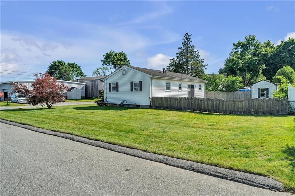 Well-maintained single-level home located on a desirable corner lot in Warwick,RI. This home offers 3 bedrooms and 1.5 bathrooms with updated flooring,vinyl windows,and vinyl siding. The finished basement provides versatile additional space with a half bath,perfect for a recreation room,home office,or extra storage. Enjoy a fenced-in yard with a storage shed and the convenience of parking included. Ideally situated close to shopping,schools,major highways,and T.F. Green Airport,offering both comfort and accessibility. Available for immediate occupancy. MLS ID 1403655