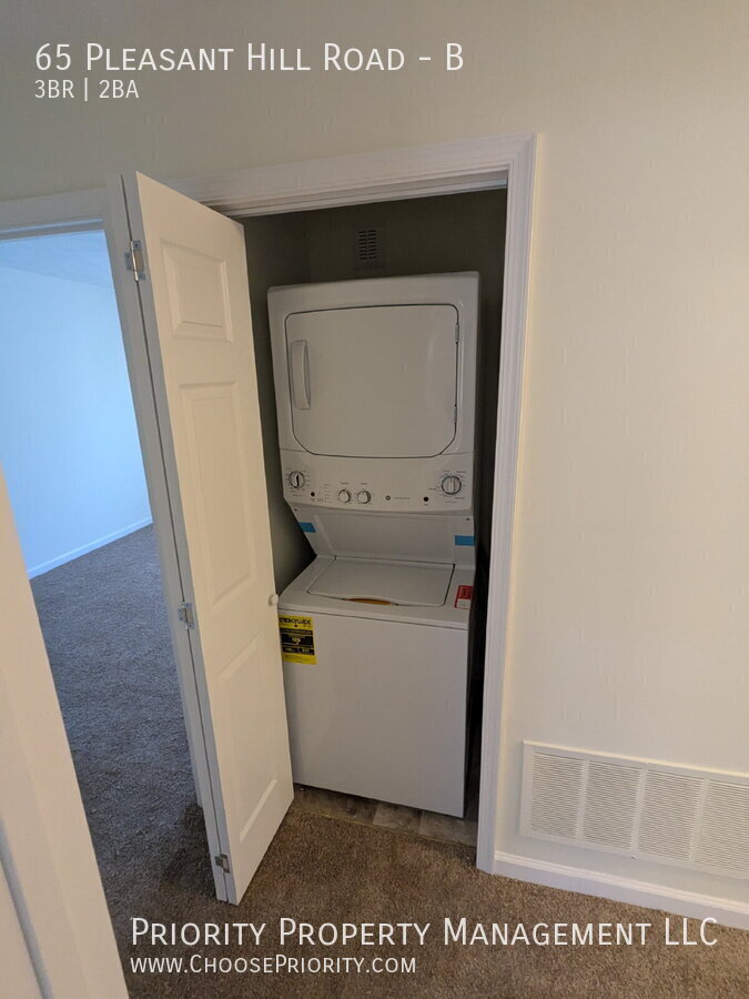 65 B Pleasant Hill Road, Harrisonburg Newly updated 3 bedroom, 1.5 bath apartment in a great Harrisonburg location! -- Large living room with new flooring! -- New carpet! -- New paint throughout! -- Converted stackable washer & dryer -- Ample storage throughout! -- Off-street parking! 2 cars only -- Patio Firm NO smoking in units. Pets allowed - 2 pets up to 60lbs total combined weight. $75 monthly pet fee and an additional $300 pet deposit. Utilities (electricity, water, sewage) are not included. If you are visiting a 3rd party listing site please visit to ensure this property is still available. All Priority Property Management residents are enrolled in the Resident Benefits Package (RBP) for $20.95/month which includes renters insurance, HVAC air filter delivery (for applicable properties) and much more! More details upon application.
