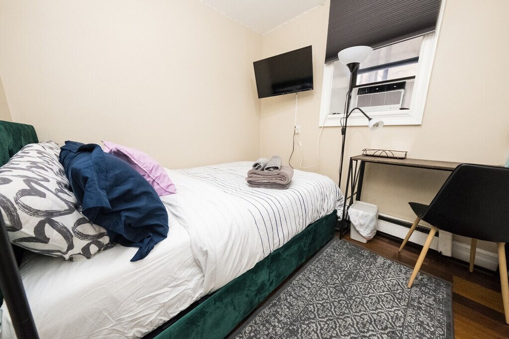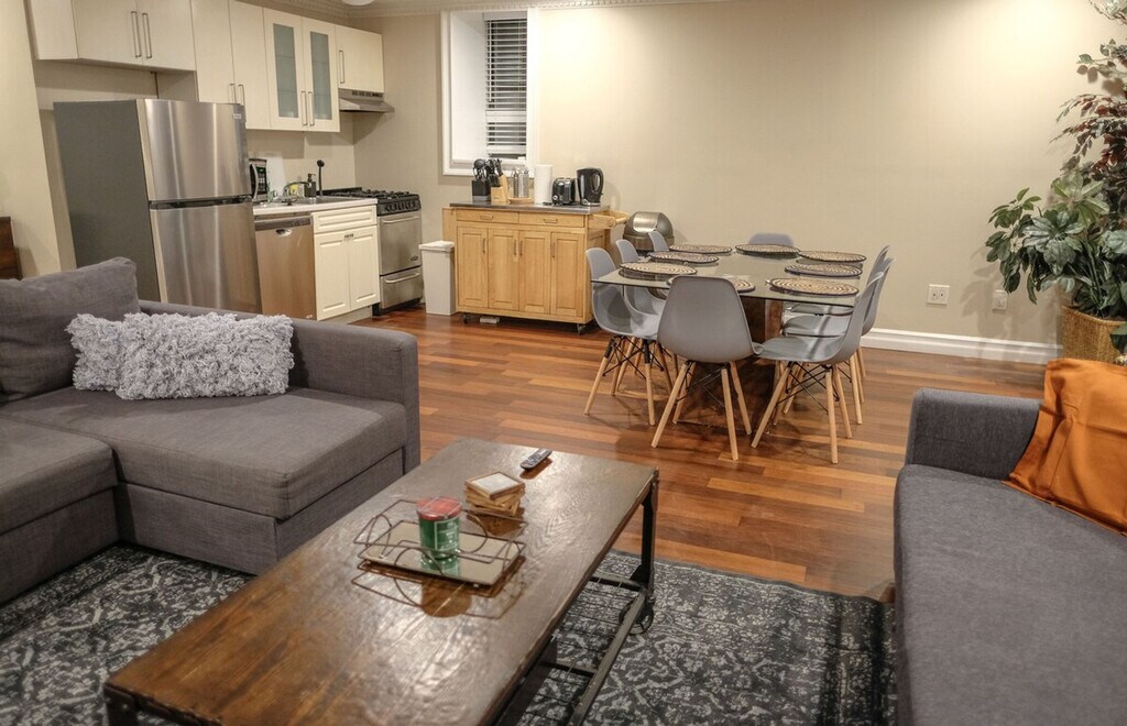 Experience ultimate comfort and convenience in this exceptionally spacious, fully furnished 4-bedroom apartment, perfect for families, groups, or extended stays. Located just moments from Columbia University, this apartment offers a private ground floor entrance for easy access. Each of the four cozy bedrooms is thoughtfully equipped with a full or queen-size bed, desk, mirror, TV, and spacious closet for all your belongings. Relax in the oversized living room featuring two pull-out sofas, a large dining table, TV, and extra storage. The fully equipped kitchen includes a large refrigerator, stovetop, oven, coffee maker, toaster, microwave, dishwasher, and all the cookware and cutlery you’ll need. Both bathrooms have a bathtub for a soothing soak, and the apartment includes a washer and dryer for your convenience. Step outside into your private backyard, an ideal spot for morning coffee, evening relaxation, or entertaining guests. Wi-Fi and cable or satellite TV are included, along with all utilities such as heat, hot water, gas, and electricity. Fresh linens and towels are also provided. Whether you visit for work, study, or leisure, this apartment provides the perfect home base. With spacious rooms, modern amenities, and a prime location close to Columbia University, you’ll feel right at home. Around the corner from Central Park, you’ll find Bareburger, Birch Coffee, Cathedral Parkway, Chipotle, Dunkin, Home Goods, Key Food, Levain, Sephora, Starbucks, Subway, Whole Foods, pharmacies, coffee shops, restaurants, and more nearby. Columbia University is 0.53 miles away, Barnard College is 0.64 miles away, and the New York Theological Seminary is 0.76 miles away. Morningside Park is 0.14 miles away, La Perla Garden is 0.14 miles away, and Central Park is 0.15 miles away. The Nicholas Roerich Museum is 0.44 miles away, El Museo del Barrio is 0.72 miles away, and the Museum of the City of New York is 0.72 miles away. For transportation, the B and C lines are at Cathedral Parkway-110th St, 0.17 miles away, and the 1 line is at 103rd St, 0.37 miles away. Close to M7, M10, M11, M96, M106, and M116 bus services. Smoking inside or outside of the house will result in an automatic fine of $500. Pets are not allowed in the property, and a fine of $500 will be charged if this rule is violated. All guests must respect quiet hours ranging from 10 pm to 7 am. Check-out time is at 11:00 AM, and guests are responsible for leaving the apartment in good condition. Luggage storage is not available, and guests are advised to use external services for luggage storage before check-in or after check-out. Stay connected with ultra-fast Wi-Fi at 1000 Mbps, perfect for work or streaming. Kindly note that a $350 refundable security deposit is required and will be collected directly by the partner after your booking is confirmed. The security deposit will be handled through direct communication with the partner and is not processed automatically. [SI]