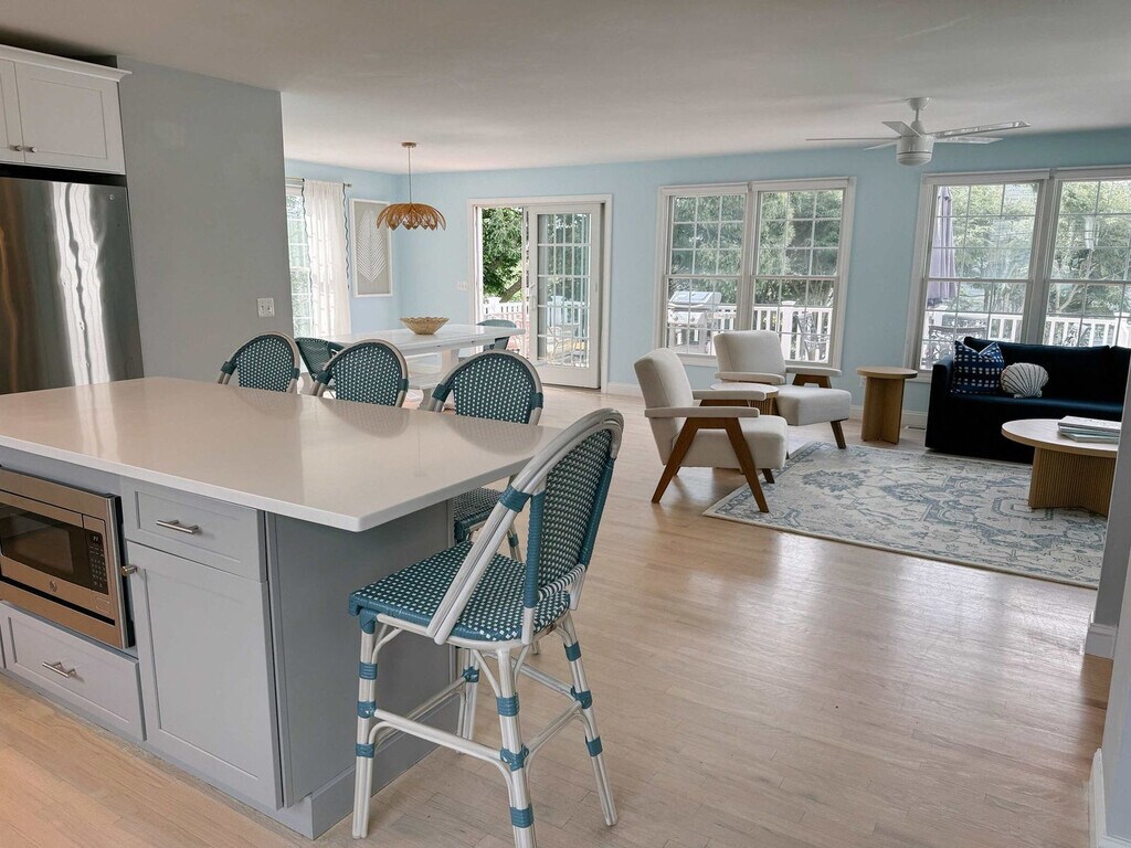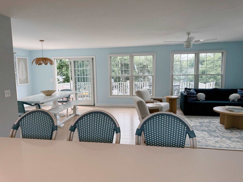 Feel at home in this spacious 5-bedroom home in Bonnet Shores, Narragansett, RI, offering water views. This home is ideal for families or groups looking to unwind by the sea. This home features an open-concept living area with a bright kitchen, dining room, and living room that flow seamlessly to a brand-new oversized deck with a BBQ, perfect for relaxing or entertaining. Central air conditioning is included for your comfort. You'll also find a full bathroom and convenient laundry on the main level, as well as an outdoor shower and a spacious backyard. Beach passes are provided for your entire party, granting access to Kelly Beach. Located in the heart of Bonnet Shores, this house is within walking and biking distance to beaches and a short drive to shops, bars, and restaurants. Enjoy easy access to the beaches with the included daily shuttle bus. Quiet hours are observed between 10 PM and 7 AM. Registration Number: RE.07239-STR [SI]
