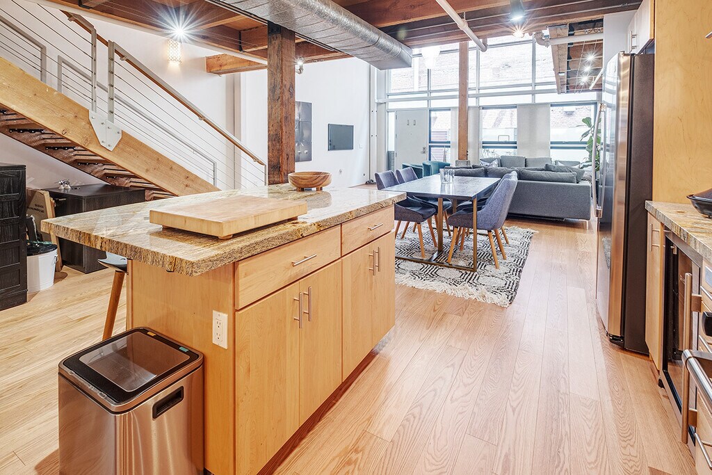Stunning Live/Work Loft at the Historic Oriental Warehouse with flexible use floor plan, private patio, parking &; storage!?PROPERTY SUMMARY:Address: 650 Delancey St #111, San Francisco CA 94107Rent: $ 5600/mo.Bedrooms: 2 ** See description below Bathrooms: 2 fullParking: 1-car prk ($200 ) with storage cage Approx. Square Footage: 1,554Utilities Included: Water, garbageProperty Type: Live/Work Loft (Unfurnished)Floors: Hardwood floorsLaundry: Washer/dryer in unitPets: NoLease Term: 1 YearAvailable Date: Mid November Description:Designated as a historic landmark, this unique building was converted from the 1876 Oriental Warehouse to 66 loft homes in 1996. Situated in the South Beach neighborhood, this one-of-a-kind loft is near the beautiful waterfront, with proximity to the cultural &; commercial heart of San Francisco, the Embarcadero, Oracle Ballpark, Ferry Building, Financial District, Cafe &; Restaurants, Safeway, etc. Walking distance to MUNI (N, T, or E lines), and Cal Train!FEATURES:** Flexible use layout - 1 Loft bedroom with two offices ( as seen in photos) / OR can be an alternative layout of 2 bed (1 loft bedroom + enclosed bedroom) + 1 office * Outdoor entryway and enclosed patio add privacy* Original exposed brick and timber beams* Stunning Timber ceilings and wall of floor-to-ceiling windows create a bright and airy space* Hardwood floors throughout* Living room flows into the updated kitchen and dining area* Gourmet kitchen with stainless steel appliances includes refrigerator, gas stove, microwave, wine cooler, and dishwasher* 1st level ( enclosed ) bedroom or office with en-suite bathroom* Industrial-style staircase leads up to the expansive loft* Mezzanine loft area is spacious enough for a king-size bed and features a flexible space (for office/gym or library), creating the perfect live/work unit* An additional full bathroom and catwalk complete the upstairs space* Washer and dryer on lower level* Water filtration system* Google Nest thermostat* Google Protect (smoke and CO alarm)* Wifi included (Google Fiber Webpass)* Water, garbage, sewer included* 1-car garage parking ($200) with storage* Sorry pets not allowed?OFFERED BY:Jeanne Zimmermann (DRE #01393214)Brown &; Patki Inc.?This unit is a rental unit subject to the San Francisco Rent Ordinance, which limits evictions without just cause, and which states that any waiver by a tenant of their rights under the Rent Ordinance is void as contrary to public policy.