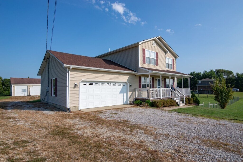 Very nice, well maintained 2 story home with a full, finished walk out basement that is situated on 2 acres with a 2 car garage and a 2 car detached garage/workshop! This home boasts just over 2,500 square feet of finished living space and features 3 bedrooms and 3.5 bathrooms. The covered front porch is welcoming and is great for sipping coffee in the mornings or enjoying quite evenings in the country setting. As you enter the home you'll notice a formal living room or office space to the left and a living room to your right. The large kitchen and dining area flow nicely with one another and features laminate flooring, a full stainless steel appliance package, and ample space for a large dining table and more! The laundry room is conveniently located off the mud room as you enter in from the garage. Upstairs you'll find 3 large bedrooms, including the primary bedroom that features a walk-in closet and en suite. Don't forget about the finished walk out basement where you can cozy up near the fireplace in the spacious family room. In addition, there is plenty of space for a play/recreation area and also includes a full bathroom. Out back, there is a nice deck and plenty of land that's great for entertaining friends and family! Did I mention the huge, detached 2 car garage with additional room for a workshop and/or extra storage!? Call today for your tour!