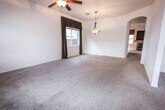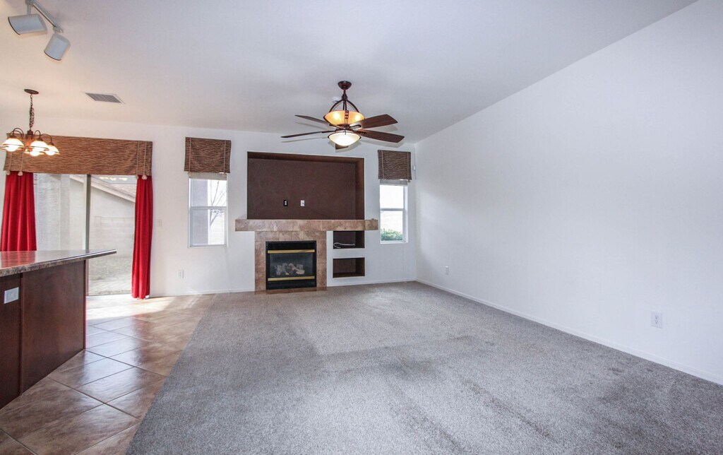 3 bedroom plus den/office and 2 bathroom in Quailwood. 1888 sq ft home includes a 2 car garage w/opener. House has gas heat, gas fireplace, A/C and ceiling fans. Kitchen appliances include stove, refrigerator, dishwasher, built-in microwave. Laundry room with washer and dryer. Master bathroom has a dual sink vanity and walk in closet. Backyard is fenced and has a covered patio. Quailwood CC&R's along with access to Quailwood amenities (additional fees may apply). Assistance Animals Only. No smoking on property. No college students, Year lease preferred. Renter's insurance required. Added to every property, as a required program, is a Resident Benefits Package (RBP) for our residents. This program handles pest control, air filter changes, utility set up, and credit building for a minimal additional fee. More details upon application. $2,300 refundable security deposit, $200 non-refundable administrative fee, $325 non-refundable blacklight/carpet cleaning fee.