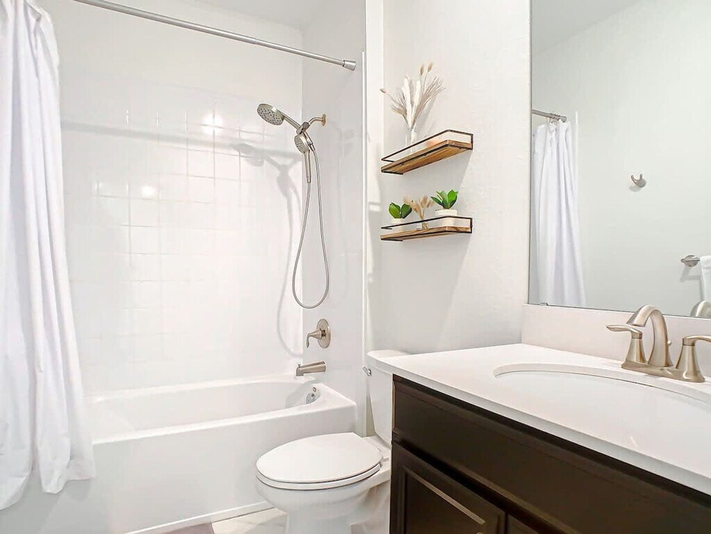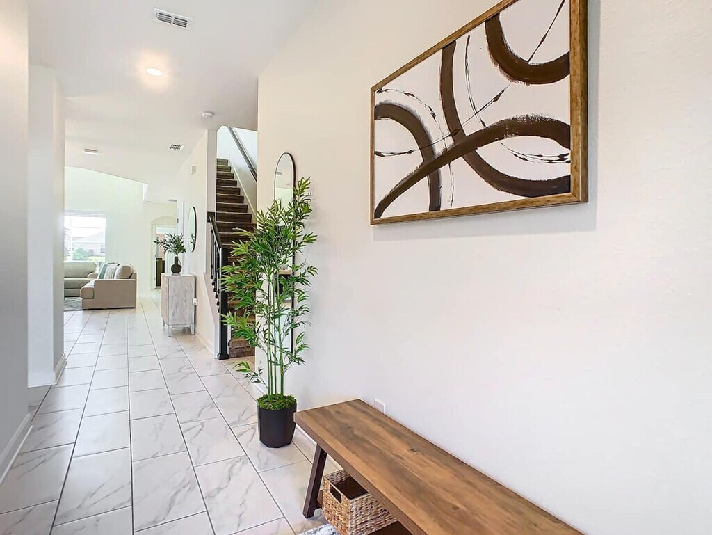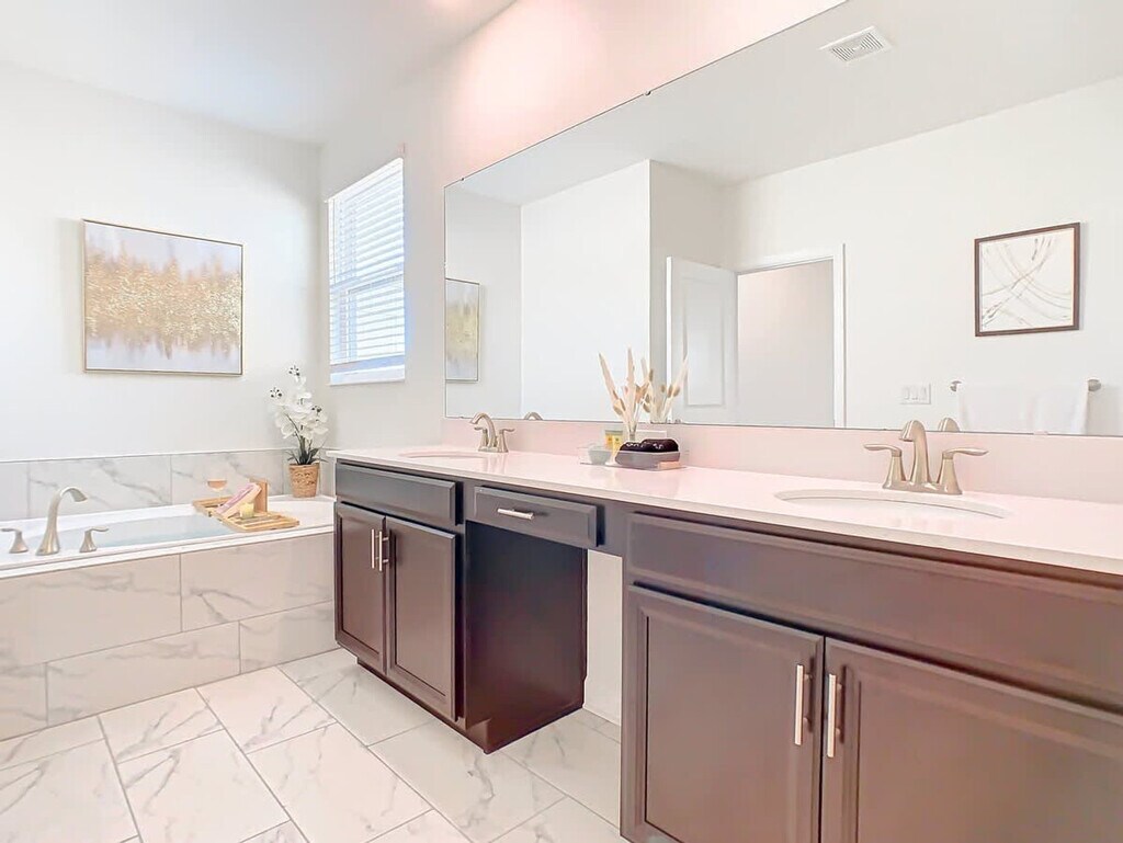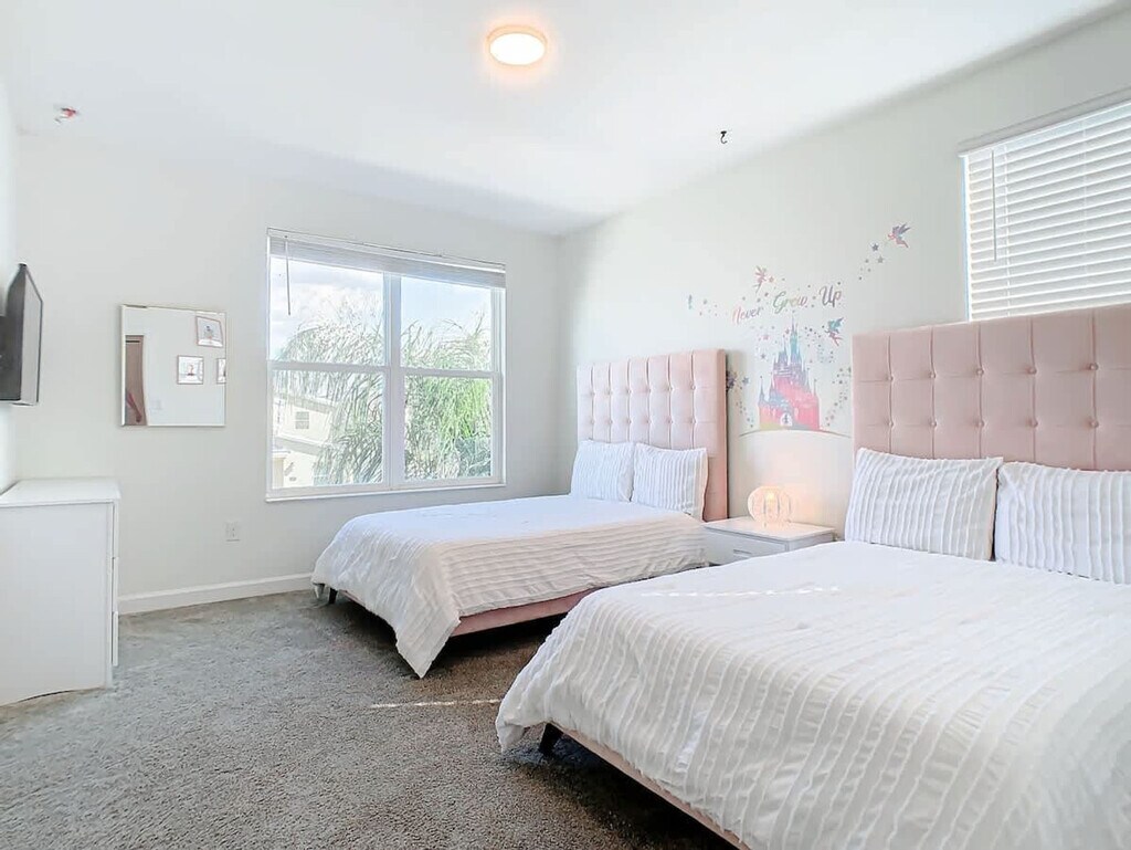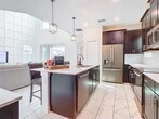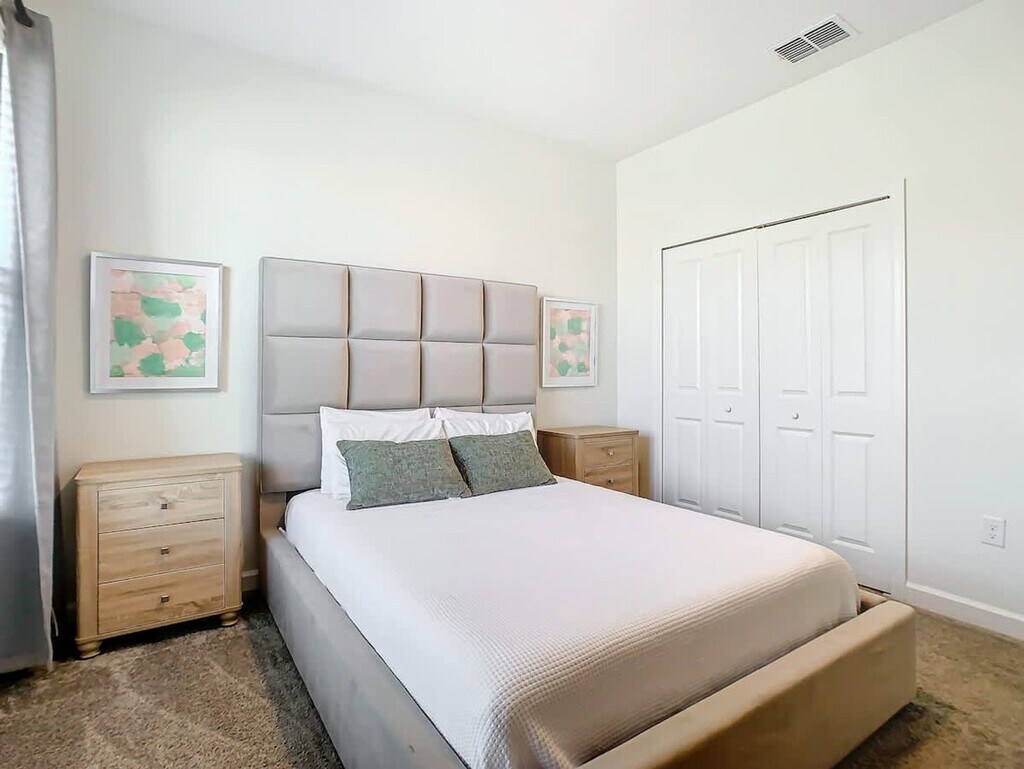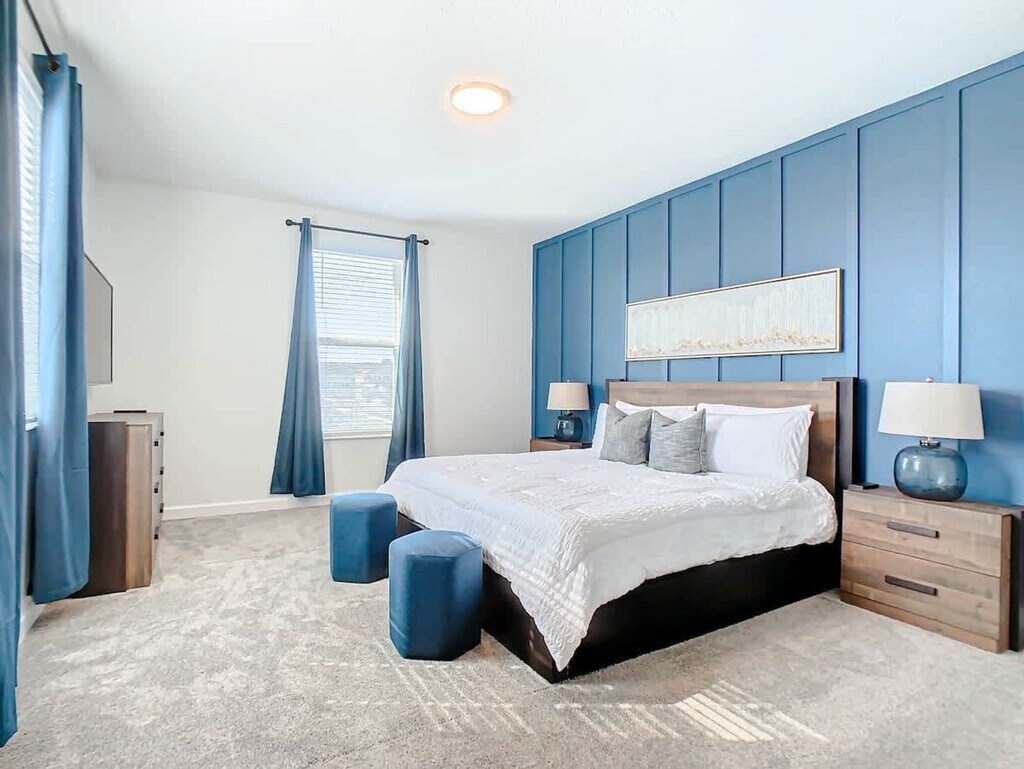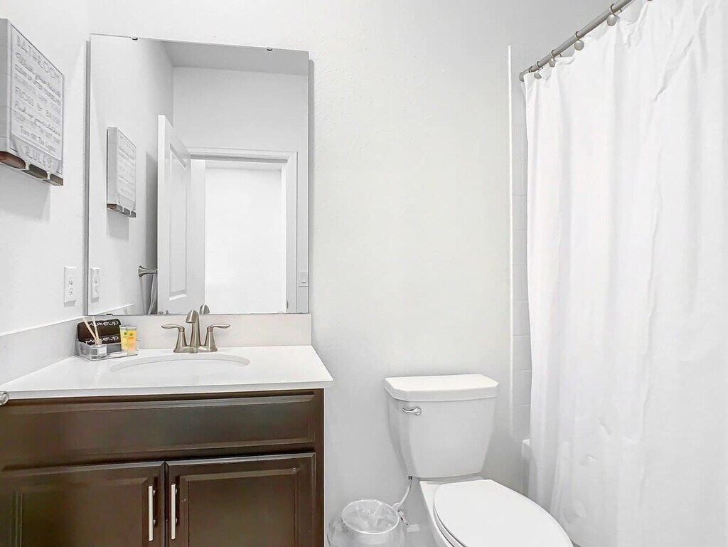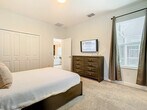 Feel at home in this beautiful and cozy 5-bedroom, 5-bath retreat in the heart of Kissimmee. This spacious home offers the perfect blend of comfort and style for your unforgettable getaway. The full kitchen features quartz counters and stainless appliances, including a drip coffee maker, toaster, kettle, dishwasher, basic pots and pans, and kitchen utensils. For entertainment, there are smart HDTVs in every bedroom and high-speed 500 Mbps internet. Enjoy the lanai, private pool, spa, sun loungers, pool safety gate, pool toys, and outdoor dining area. The loft upstairs includes Connect 4, Scrabble, Jenga, movies, board games, and cards. Pool and spa heating is available for $40 per day and must be requested 48 hours in advance. A $70 barbecue fee will be charged per stay, which includes barbecue cleaning, a propane tank, and barbecue utensils. Conveniently located minutes away from Orlando's world-famous theme parks, shopping, and dining destinations, this home is near many attractions. Disney World is 18 minutes away, Epcot is 15 minutes away, Animal Kingdom is 20 minutes away, Hollywood Studios is 16 minutes away, Sea World is 26 minutes away, Islands of Adventure is 22 minutes away, Legoland is 57 minutes away and Fun Spot America is 15 minutes away. The Oasis Club at ChampionsGate, featuring a lazy river, two-story water slide, kids’ splash zone, tiki bar, full-service restaurant, movie theater, game room, fitness center, sand volleyball, and tennis courts, is a 6-minute drive away. The Retreat Club, featuring a zero-entry family pool, large water slides, mini-golf, splash pad, bar, and kids’ activities, is a 4-minute drive away. ChampionsGate Golf Club is an 8-minute drive away. Disney’s BoardWalk is a 27-minute drive away. Pointe Orlando and ICON Park are both a 28-minute drive away, and Hard Rock Hotel & Casino Tampa is a 1 hour and 15-minute drive away. Quiet hours are between 11 PM and 8 AM. Only park in the designated areas. Every person with a vehicle will need to have a parking/gate pass. During your stay, trash is to be placed inside the bench by the front door for community collection daily starting at 7:00 am. All trash must be placed into trash bags, then placed into the bin out by the front door; loose trash found in bins is subject to a fee of $50. Avoid flushing any items in the sink and toilets to avoid clogs. No pets, extra guests, parties, events, or smoking are allowed. [SI]