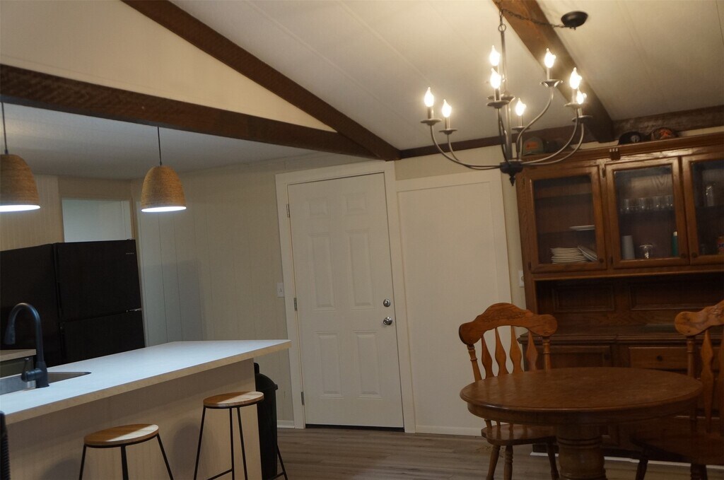 This charming 3 bed,2 bath home sits on a spacious 1/2 acre lot. The open living/dining area flows seamlessly into the updated kitchen,complete with a built-in hutch. Enjoy the convenience of a large laundry room just off the kitchen. The home features vinyl plank flooring throughout and generous walk-in closets,including his and hers in the primary bedroom. MLS# 24073816