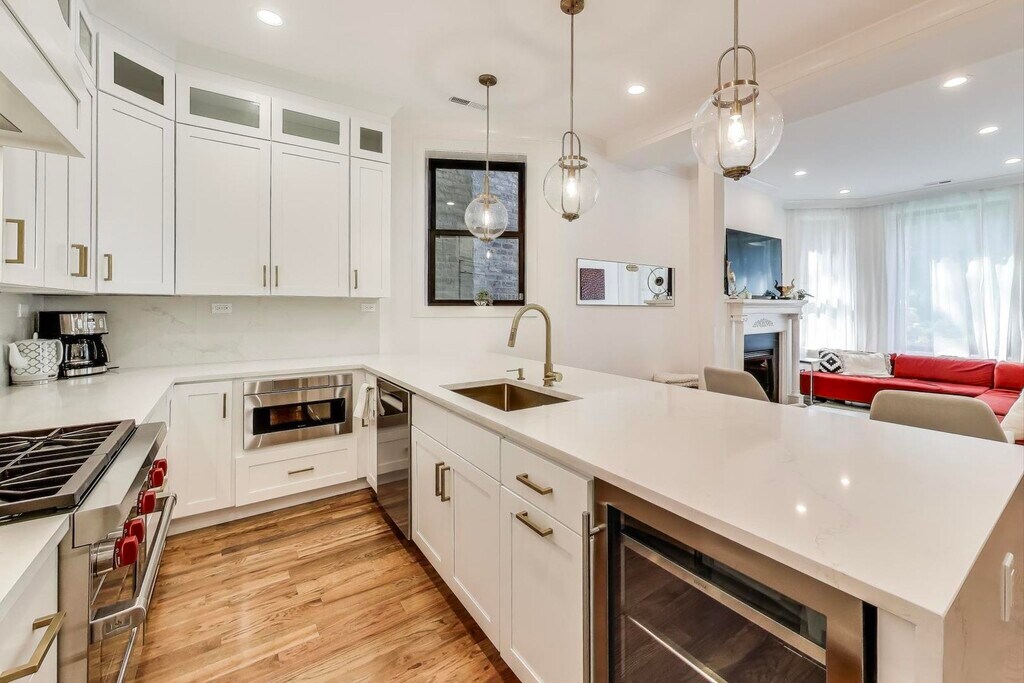 Elevate your lifestyle with this opulent first-floor apartment in the highly sought-after East Lincoln Park area. This meticulously renovated historic masterpiece offers a harmonious blend of classic elegance and contemporary luxury. Step inside to discover an elegant mid-century modern design featuring 10-foot ceilings,pristine hardwood floors,Marvin windows,and charming original decorative leaded glass. The apartment boasts 4 expansive bedrooms,each generously sized to accommodate a king-sized bed,and 2.5 lavishly appointed bathrooms. Culinary enthusiasts will adore the gourmet kitchen,a true chef's dream. It's equipped with a state-of-the-art Sub-Zero refrigerator,Wolf stove,wine and beverage refrigerator,under-counter microwave oven,and a custom hood with crown molding. The grand quartz island features a stunning waterfall edge,perfect for entertaining. Efficiency & Outdoor Living This home is designed for comfort and efficiency,featuring spray-on foam insulation to ensure optimal energy efficiency and significantly reduce heating/cooling costs. Relish in Chicago's seasons on the massive 15' x 15' rear deck or enjoy a quiet moment on the enchanting front porch. Unbeatable East Lincoln Park Location This impeccably rehabilitated apartment is ideally positioned in East Lincoln Park. You'll be within walking distance of top-rated schools like Alcott College Prep and Lincoln Park High School,as well as beautiful beaches and an array of gourmet restaurants. This location truly offers the best of city living. MLS# MRD12490167 Based on information submitted to the MLS GRID as of [see last changed date above]. All data is obtained from various sources and may not have been verified by broker or MLS GRID. Supplied Open House Information is subject to change without notice. All information should be independently reviewed and verified for accuracy. Properties may or may not be listed by the office/agent presenting the information. Some IDX listings have been excluded from this website. Prices displayed on all Sold listings are the Last Known Listing Price and may not be the actual selling price.