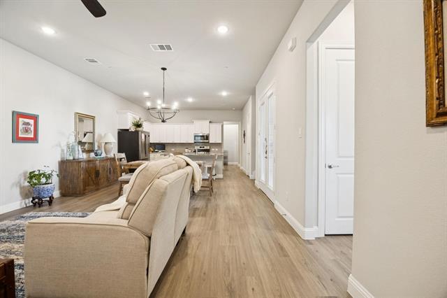END UNIT TOWNHOME built 2022 with light and bright OPEN CONCEPT! 4 bedrooms and 2 living rooms! Immaculate condition, feels like NEW! PRIMARY BEDROOM DOWNSTAIRS offers spacious Master Bathroom with separate vanities and big Master Closet. ONE GUEST BEDROOM with Full Bathroom DOWNSTAIRS. Upstairs offers TWO GUEST BEDROOMS with Full Bathroom and a bonus LOFT area for extra living and play enjoyment. Townhome features Stainless Steel appliances, Refrigerator 2024, Gas Cook top, Huge Walk-in Pantry, Energy Efficient windows, Ceiling Fans remotes in each bedroom! Townhouse has fire suppression and surge protection. Laundry Room Downstairs. Large Covered Porch. Rear entry 2 CAR garage. HOA takes care of the front yard . The landlord covers monthly HOA. Excellent location! Easy access to walking and bike trail! Quick access to 183 Tollway and I-35 will take you to Fort Worth, Alliance, DFW airport and Dallas within 15-30 mins! 0.4 miles to Train Station Iron Horse offers train every 30 mins to downtown Fort Worth or Grapevine, DFW airport.