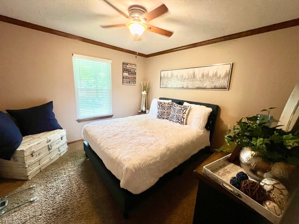 Signed lease and down payment before 12/31/2025 will receive $500 off first months rent. 15 minutes from Air Force Base. Large backyard with cement pad for basketball or car parking. Corner lot on quiet Street on Dead End Rd. Shed in the back for storage. Bonus room for second living room, bedroom or sitting area. Small room for office or large storage.