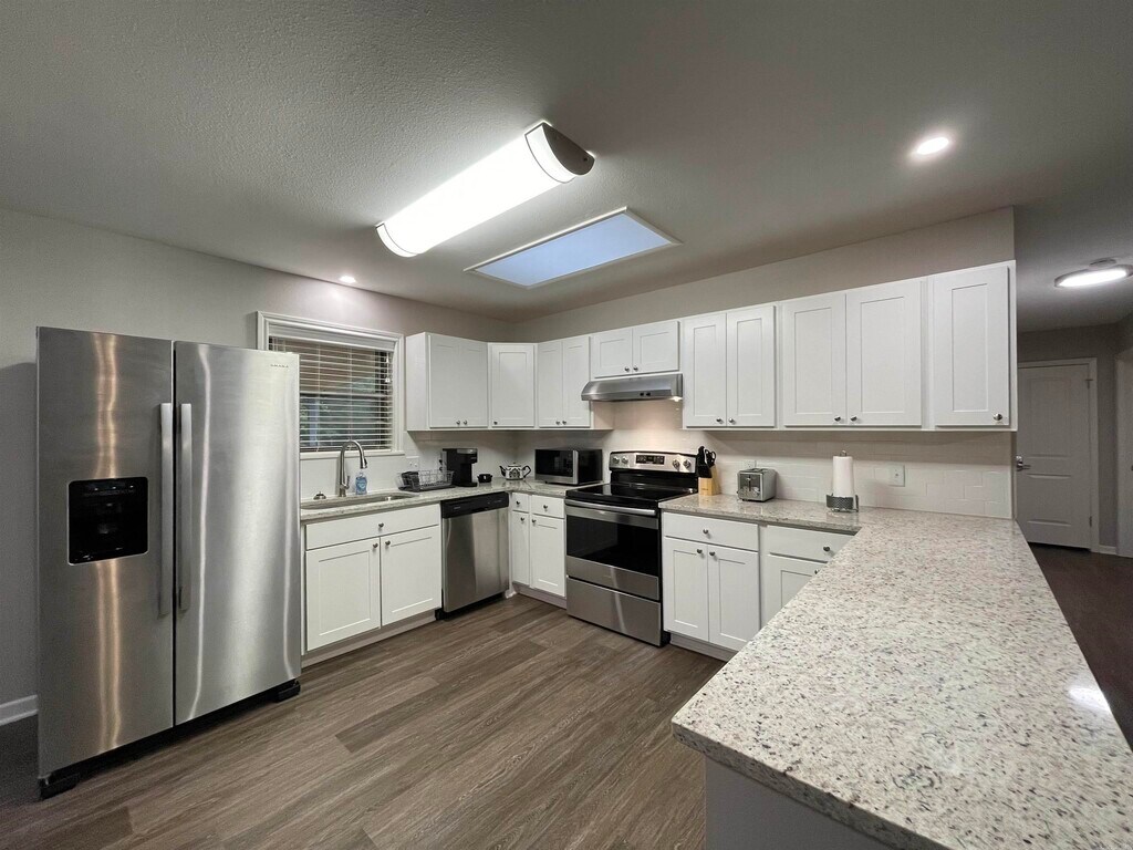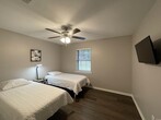 Ready for business travelers & travel nurses & accommodating up to 8 guests. Each bedroom features smart tv & 2 twin beds for each bedroom. We can convert to king bed sets upon request. Extremely fast internet with a dedicated workspace. With 3 large bedrooms, 2 full bathrooms, large 2 car garage, meditation garden at back of property & massive covered patio out back. With an open concept living room & kitchen flowing out to back patio, perfect for entertaining. Also we have a full laundry & additional storage. Corporate rentals, business travelers, insurance claim stays, construction companies & all others looking for a value stay compared to hotel experience.