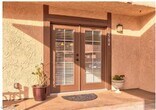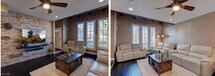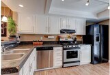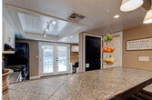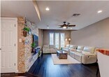 This unique beautiful townhome is highly upgraded!! This charming townhome has a special appeal that is unlike many other homes!! The fresh white cabinets and earth tones used in the granite counters, hardwood flooring, stacked stone and the soothing wall color make for a home that is cozy & ready to move into!! Pendant lighting & shiplap at kitchen ceiling give an added designer touch. Open entertaining floor plan W/ the kitchen and dining nook that looks into the family room. In addition to the seating area at the kitchen, there is an additional built in bar/breakfast area W/ matching granite. Porcelain tile flooring in the kitchen and laundry/office nook. The primary bedroom is a loft style w/ Exposed beams that add a design flair. There are 2 full bathrooms upstairs that have nice upgrades. Shutters added in the front windows for special curb appeal & energy efficiency, upgraded security door at front entrance. french doors that lead to your covered carport.