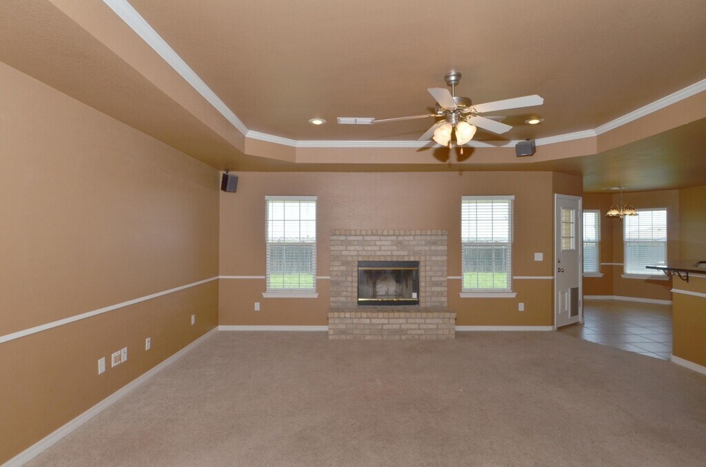 Beautiful 3Br, 2 Baths with Double Garage with electric opener, Kitchen built-in Range & Oven, Dishwasher, Microwave, Garbage Disposal. Whirlpool tub in master bath. Isolated master bedroom. Central heat and air conditioning; fireplace, automatic sprinkler system. New paint and carpet. Raised ceiling in large living area. Ceiling fans throughout. Great neighborhood - Hillside Terrace in southwest Amarillo.