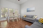 This well-maintained home offers a bright, open feel with multiple living spaces, including a formal living room, formal dining room, and a comfortable family room off the kitchen. The kitchen has been recently updated with granite countertops, new cabinets, a modern backsplash, and stainless appliances. A separate office provides a convenient work-from-home space. The split floor plan gives the primary bedroom added privacy, complete with a large ensuite bath and an extended walk-in closet. The guest bedrooms share an updated hall bath, and the home includes a washer and dryer for added convenience. Major system updates include a newer roof, new AC and heat (inside and out), new water heater, and a brand-new grinder pump. Outside, you'll find a fenced backyard with a patio—perfect for outdoor enjoyment. Small dogs (under 25 lbs) and cats allowed.