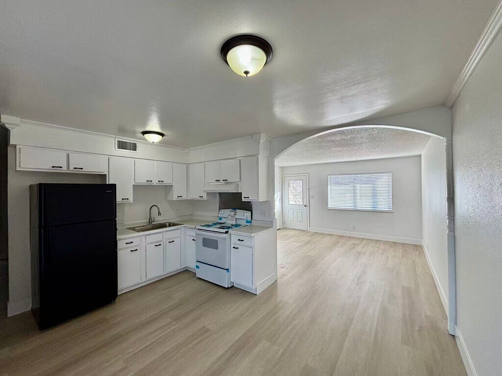 Beautifully refreshed single-story home featuring an open-concept layout and abundant natural light. Full house vinyl floor upgraded. The kitchen offers white cabinetry, updated finishes, and seamless flow into the living area—perfect for everyday living and entertaining. Modern flooring throughout enhances the bright and airy feel of the space. Spacious backyard with block wall fencing provides privacy and endless potential to create your own outdoor retreat. Conveniently located near shopping, dining, and easy freeway access. Referral Agent Commission: $400. Contact the listing OFFICE for any questions. Rent AS-IS. All applicants over the age of 18 must apply with front/back ID, last 2 months pay stubs & bank statements, and $65 NON-Refundable application fee. TENANT is responsible to pay a $50 monthly trash&sewer fee on top of monthly rent. $300 pet deposit per pet (small pets), $60 key deposit, $300 clean deposit, $300 utility deposit. Requirement: minimum 600 credit score for all applicant and monthly household net income 3x the rent. To apply, please visit