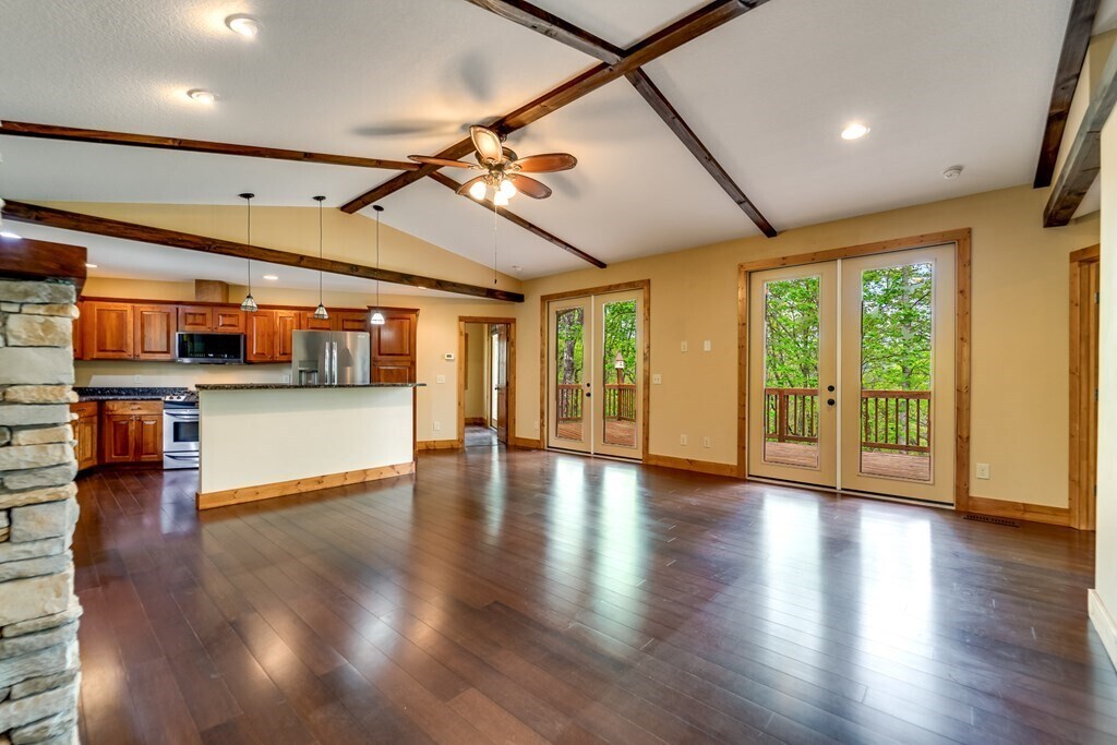Spacious, Stylish Mountain Home with Two Master Suites, Deck & Starlink Internet Located just 10 Minutes from town. Welcome home to comfort, flexibility, and easy living in this beautifully designed open-concept residence. Whether you are working from home, hosting family, or simply enjoying a peaceful mountain lifestyle, this home offers the perfect balance of function and charm. As you step inside, you are welcomed by a bright living room that flows seamlessly into the kitchen and dining area. A stunning stacked-rock fireplace creates a warm focal point, while double doors lead out to a large private deck perfect for morning coffee, outdoor dining, or entertaining friends. The kitchen features granite countertops and a convenient breakfast bar, making it ideal for both everyday meals and casual gatherings. Two True Master Suites on the Main Level The main floor includes two spacious master bedrooms, each located on opposite sides of the living area for privacy. Both bedrooms include: Private en-suite bathrooms Direct access to the deck One of the bathrooms is also accessible from the living room, making it convenient for guests without sacrificing privacy. Extra Living Space Downstairs The lower level offers a large family room or game room with its own exterior access great for movie nights, hobbies, or entertaining. Off the family room is a bonus room with a private bathroom, ideal for: A home office Guest suite Hobby or fitness room Outdoor Space & Storage Outside, you'll enjoy: A fenced backyard Two powered storage sheds (12x20 and 8x10), perfect for tools, storage, a workshop, or outdoor gear Ample parking for residents and guests Work-From-Home Ready High-speed Starlink Internet is available, making this home ideal for remote work or streaming. Well behaved pets considered with non-refundable security deposit. Renter is responsible for all utilities and yard maintenance. Please contact our listing agent, Jean Owen at Realty One Group Vibe for more information or to schedule a showing. Phone: , email: