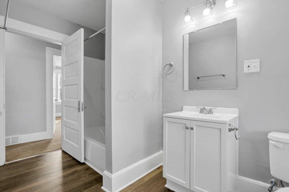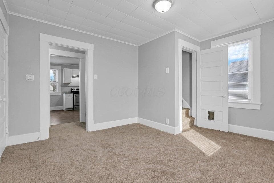 This spacious 3-bedroom,1-bath upstairs rental offers approximately 1,100 sq ft of comfortable living space. Featuring a bright kitchen with stainless steel appliances,white cabinetry,and updated countertops,this home combines modern style with classic character. The bathroom has been refreshed with a clean,contemporary look,including updated fixtures and a full shower/tub combo. Bedrooms are generously sized and filled with natural light,offering cozy carpet and neutral tones throughout. Conveniently located near shopping,dining,schools,and the local hospital—making it a great place to call home.