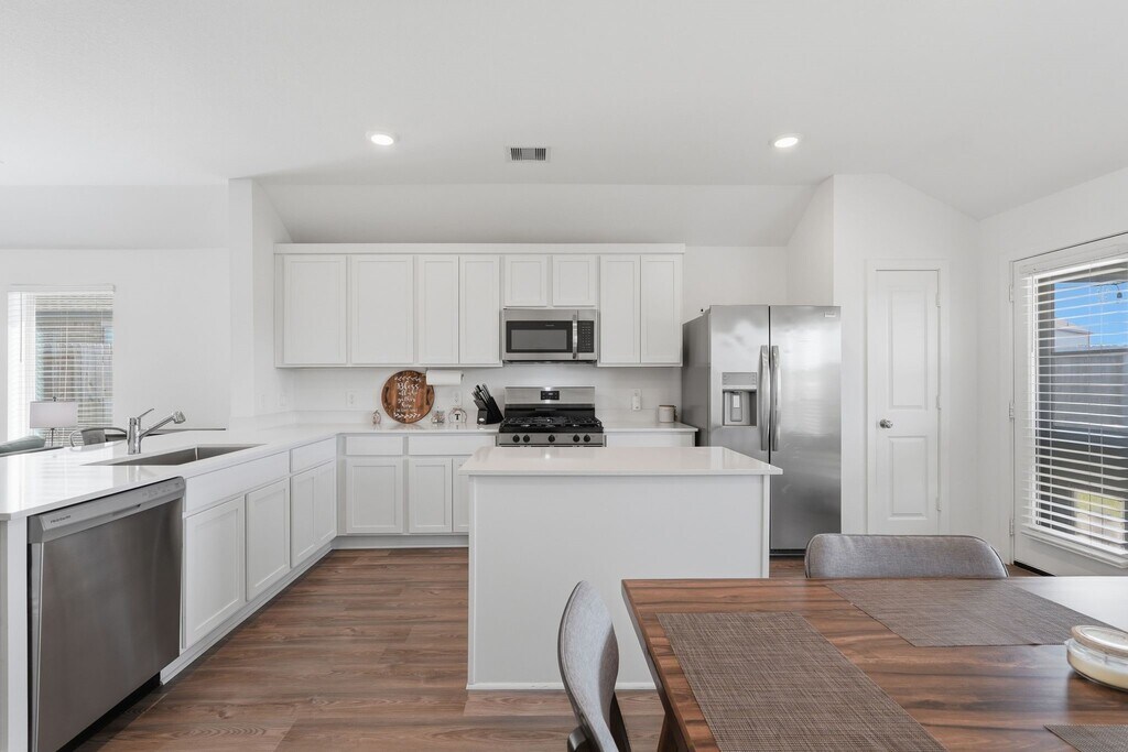 Beautiful one story home on a quiet corner lot in Magnolia Ridge. This 4 bedroom,2 bathroom home offers a great layout with the secondary bedrooms separate from the primary suite for added privacy. The spacious primary bedroom features two closets,with one conveniently connecting directly to the laundry room. Washer,dryer,and refrigerator are all included. Enjoy a large backyard with a covered patio and no back neighbors,perfect for relaxing or entertaining. With only one immediate neighbor and located on a quiet street,the home offers a peaceful setting. The neighborhood features two playgrounds,a splash pad,and walking trails,and is conveniently located near shopping,grocery stores,restaurants,and local schools. MLS# 91066311