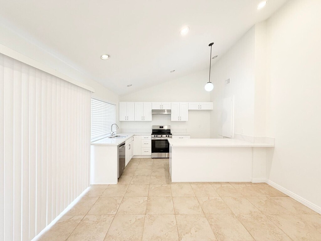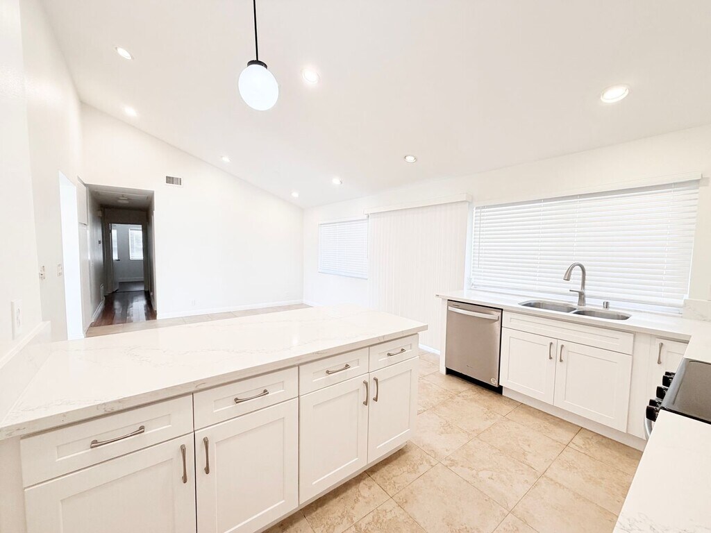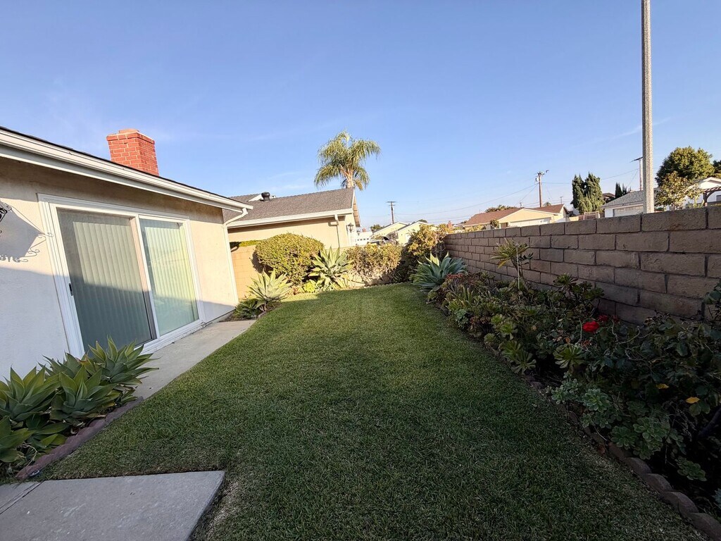 Beautifully updated single-family home offers 4 bedrooms and 2 bathrooms in a desirable Buena Park neighborhood known for its strong school district. The home features a blend of tile flooring, original refinished wood flooring, and smooth surface flooring in the bedrooms. Freshly patched and painted interiors, tall ceilings, recessed lighting, and updated windows with new blinds. The fully functioning kitchen is equipped with modern finishes, including a stove, dishwasher, white cabinetry, ample counter space, and a convenient breakfast bar. The wraparound backyard extends to the front yard and includes an open easement, a covered concrete patio ideal for outdoor seating, and sprinklers with landscaping services included. Additional features include central heating and air, a two-car garage with a utility sink & washer & dryer hookup only. Conveniently located near the 91 and 5 freeways, residents enjoy easy access to local shopping centers, parks, restaurants, and popular attractions. Tenant is responsible for utilities. Professionally cleaned and move in ready.