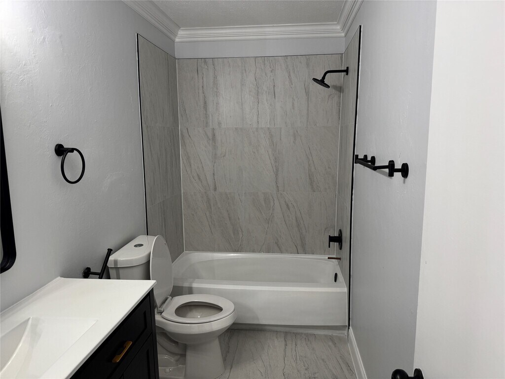 Exquisitely remodeled,move-in ready home in the established community of Langham Creek Colony. Featuring new energy-efficient windows,new furnace and new electrical panel,this rare gem offers luxury and style. The open floor-plan boasts a spacious formal living area,generously sized den,and a fabulous kitchen with newer cabinets,granite counters,and new stainless steel appliances. No carpet in the home - living areas with luxury vinyl plank and bedrooms with laminate. The primary suite spotlights a spa like bathroom with new vanity,upgraded lighting and new tiled shower with oversized tub. The secondary bathroom was completely remodeled as well featuring new vanity,upgraded lighting and new tiled shower with glass doors. The home was thoroughly painted. All bedrooms have upgraded lighting with ceiling fans. A fenced back patio provides a private outdoor retreat,while the covered carport ensures convenient parking. Storage shed located next to the carport. MLS# 24336524