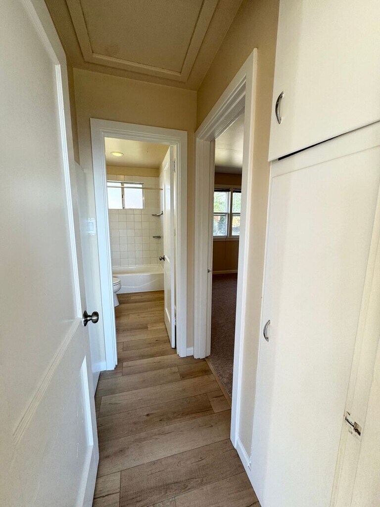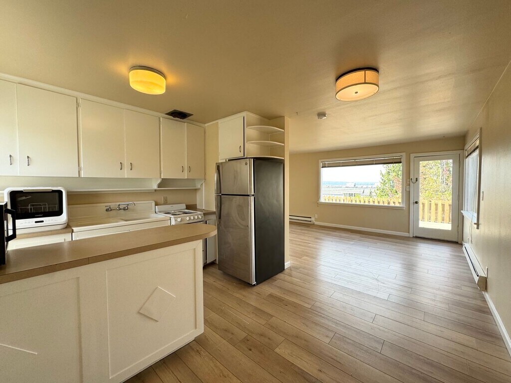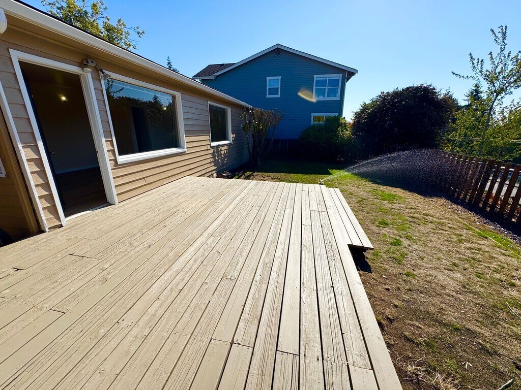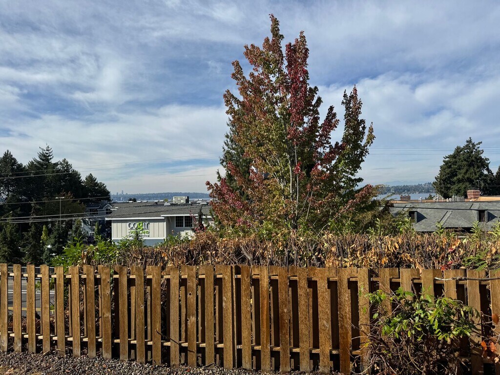 View of Lake Washington and Olympic mountains from the living area and backyard. This Cozy cottage is in a Prime Location! 2 Bed, 1 Bath, plus den (could be used as a 3rd bedroom or studio/work space), living room and breakfast nook. Fully fenced backyard with lawn space and deck for entertaining and enjoying the outdoor view. Located in Houghton within walking distance to downtown Kirkland. Walk 2 blocks down to Lake Washington Blvd. 2 blocks to park. New full interior paint, new wood LVT flooring, new carpeting, and new roof! Kitchen with eating area, W/D, and large fully fenced yard oasis with private deck and a view! Take stairs from the corner of this neighborhood to Lakeview Drive below and walk just 1 block to the waterfront off Lake Washington Blvd, parks, marina, restaurants, art galleries, and more. Close Houghton Market and restaurants. Very close access to entrance to 405 and 520. Appliances included: washer, dryer, refrigerator and stove. 1 carport with storage. Tenant responsible for all utilities and yard care. Pets accepted case by case breed restrictions may apply, limit 2. Refundable security equal to one month's rent. 12-18 month lease options. Available now! $40 application fee per adult applicant.